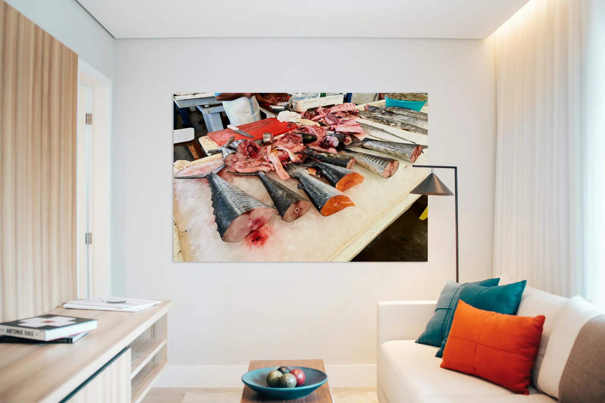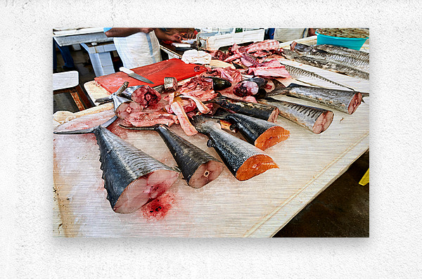 ABOUT THIS ARTWORK: FRESH FISH AND SEAFOOD DISPLAYED ON ICE IN DUBAI MARKET