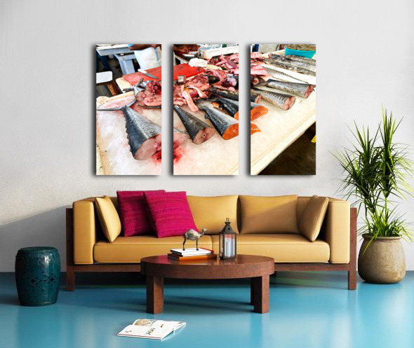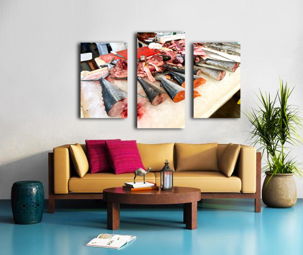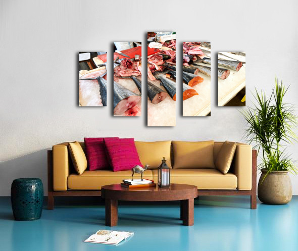 Fresh fish and seafood displayed on ice in Dubai market Picture Frame Printing