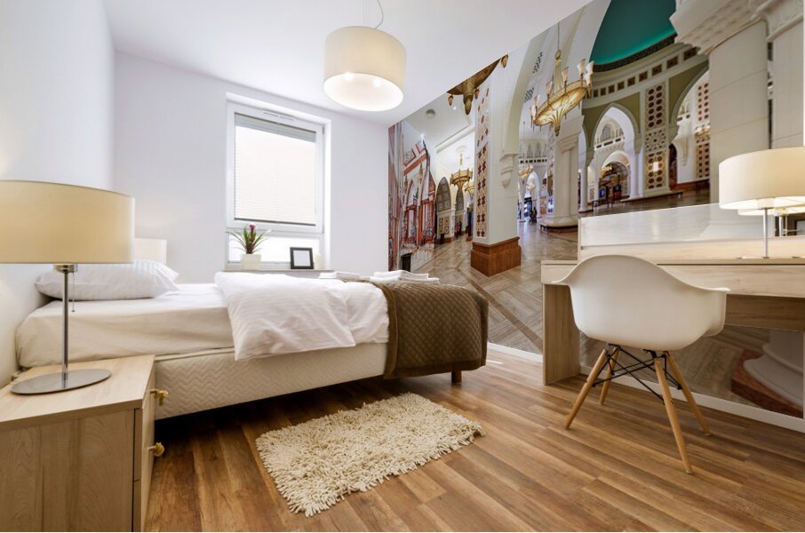 ABOUT THIS ARTWORK: ORNATE MIDDLE EASTERN INTERIOR WITH CHANDELIERS IN DUBAI UAE