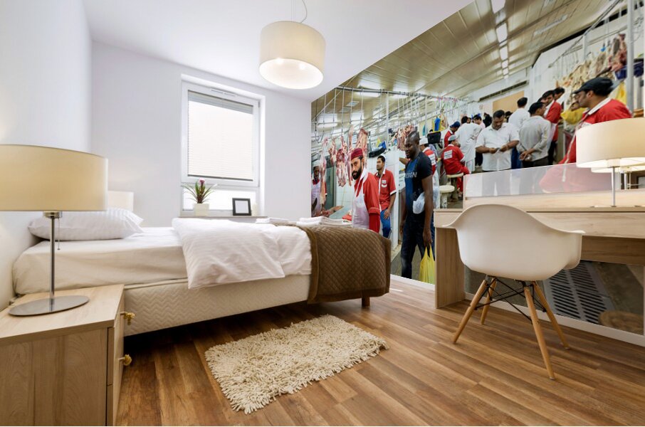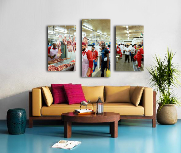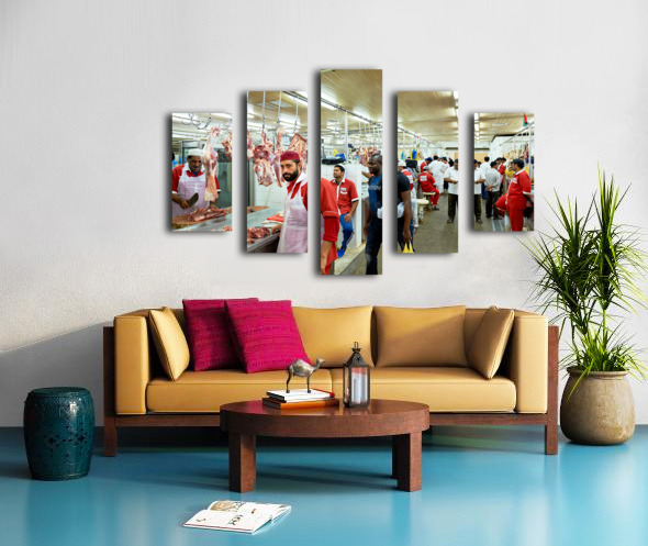 Butchers work at a busy meat market in Dubai UAE preparing fresh Marco Brivio Puzzle printing