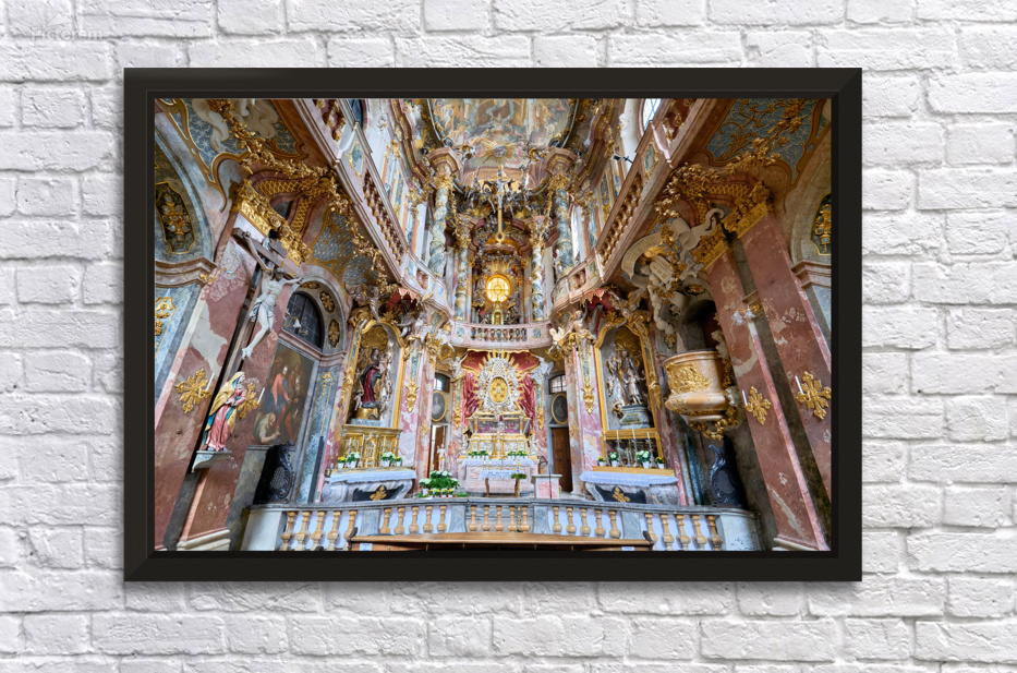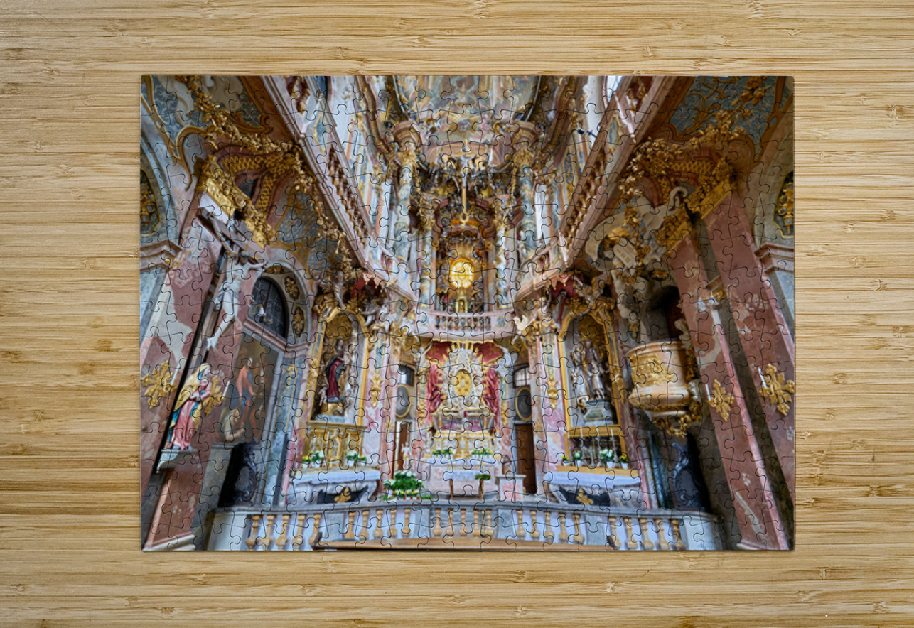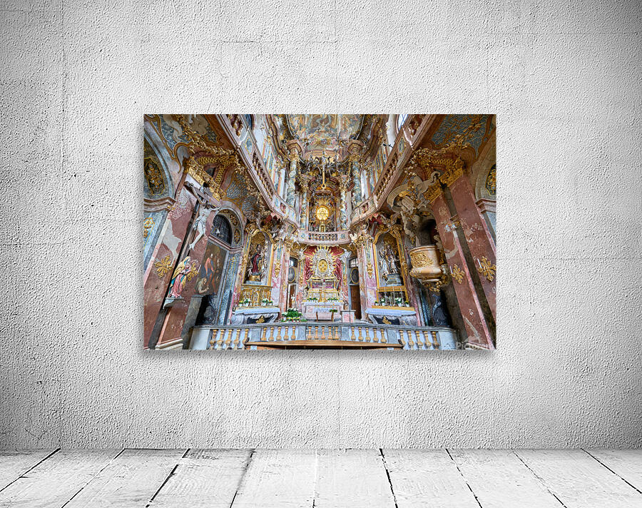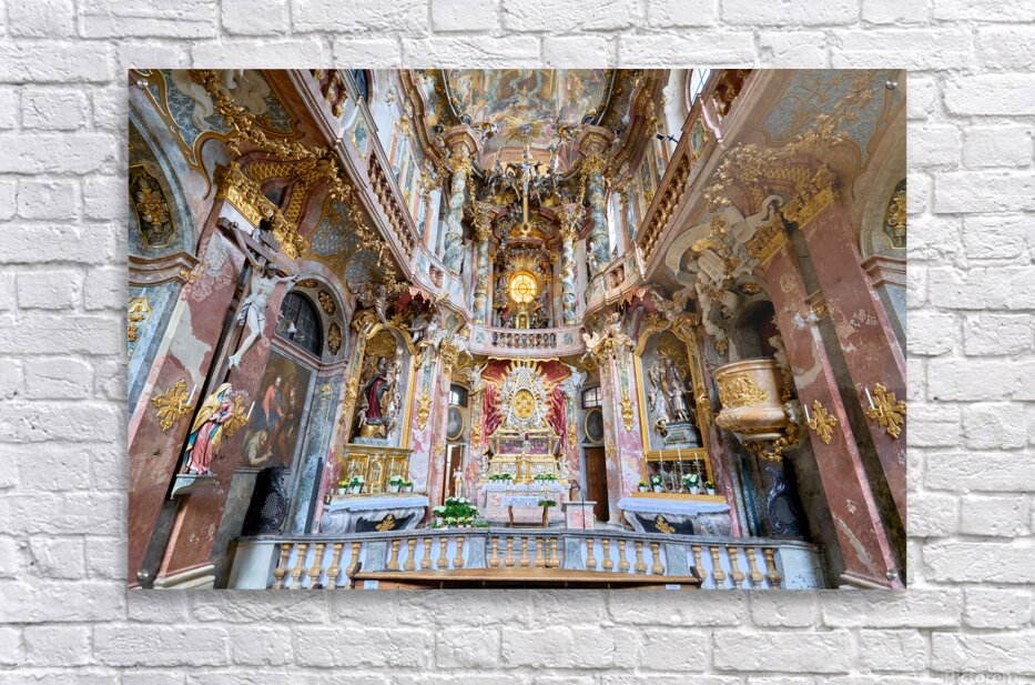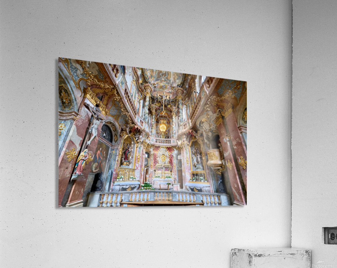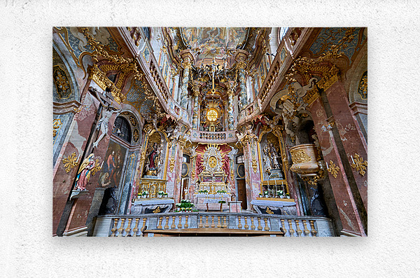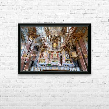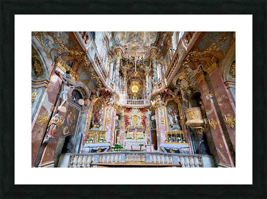 Visitors admire the ornate interior of St. Johann Nepomuk at Asam Church. The church showcases elaborate art and historical details.