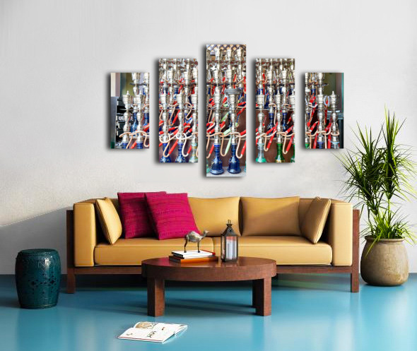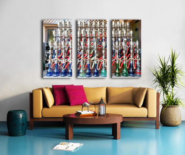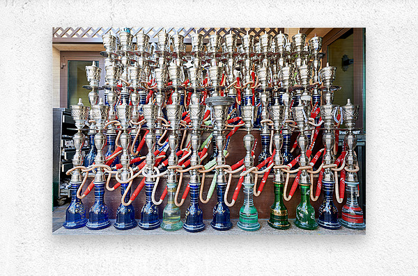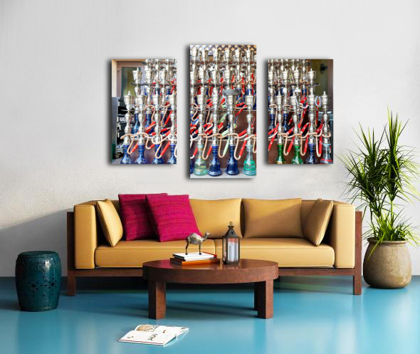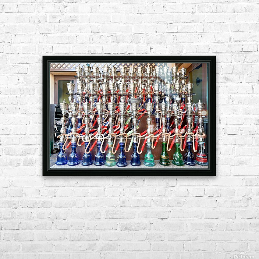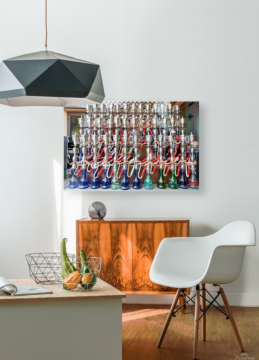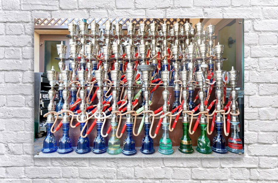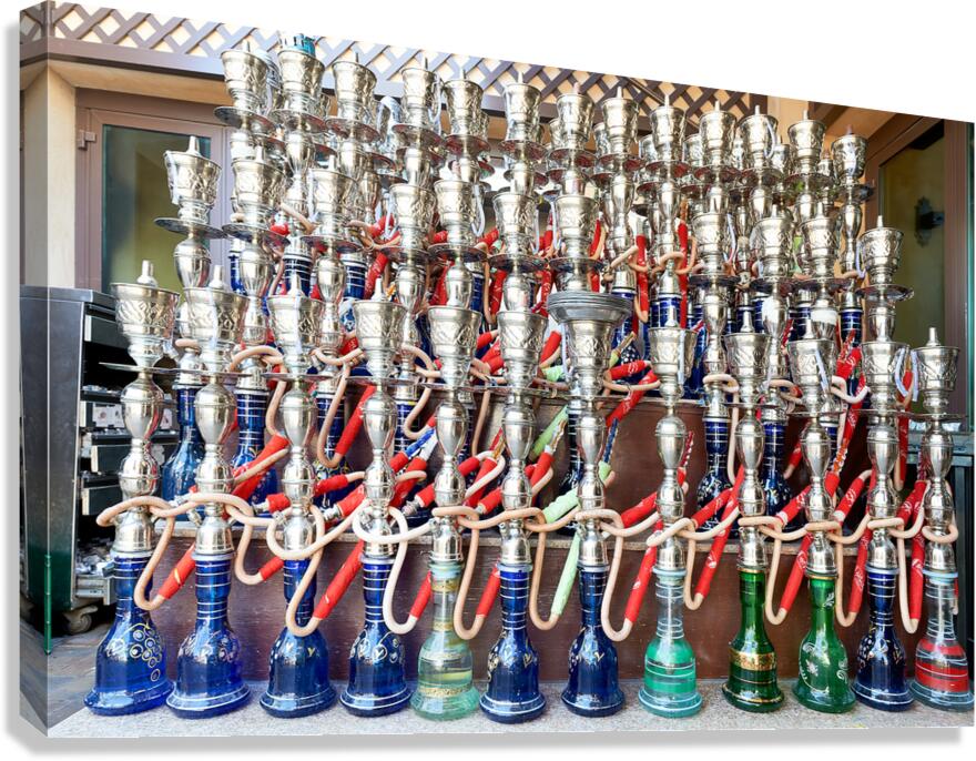 Display of hookahs for sale in Dubai cafe with many options Picture Frame Printing