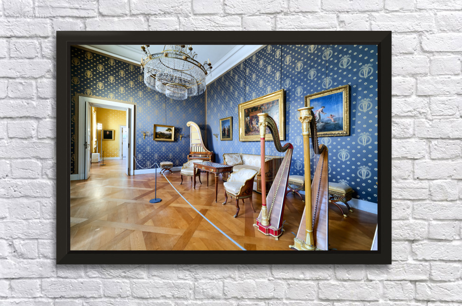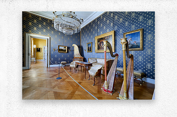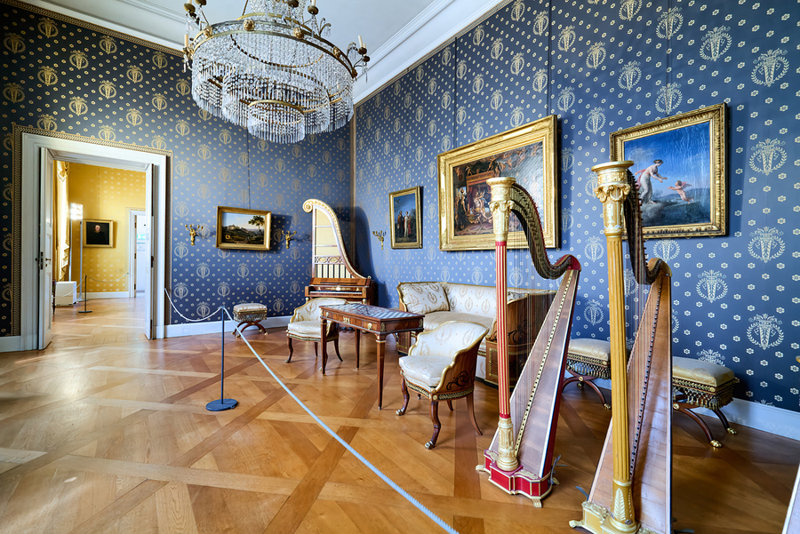 Visitors walk through the ornate rooms of the Residenz Palace in Munich. The rich history and art capture attention throughout the space.