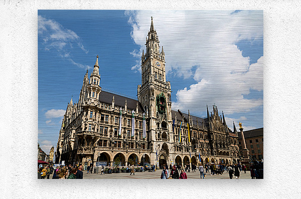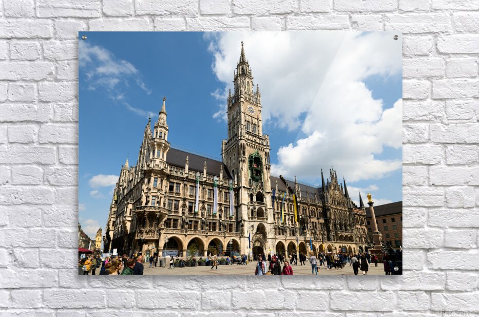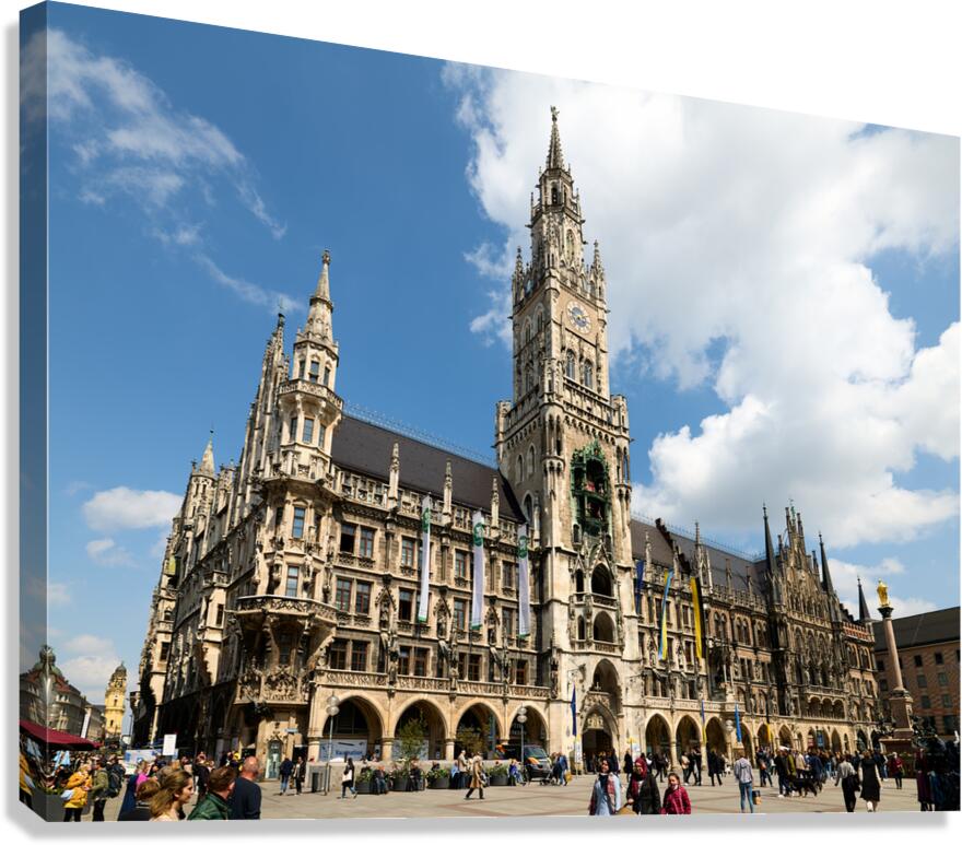 ABOUT THIS ARTWORK: MUNICH TOWN HALL IN MARIENPLATZ ON A SUNNY DAY IN BAVARIA