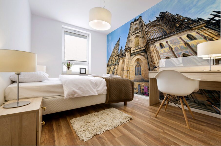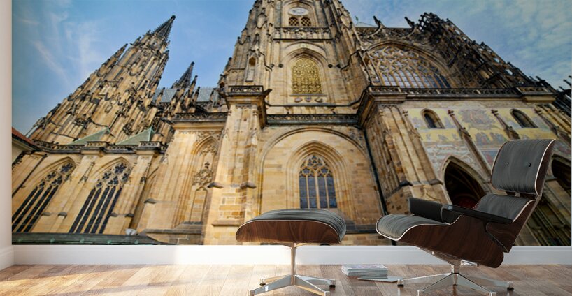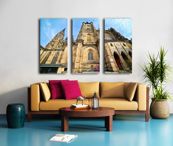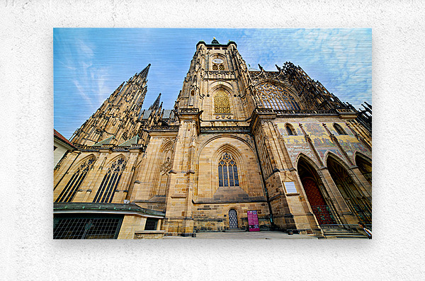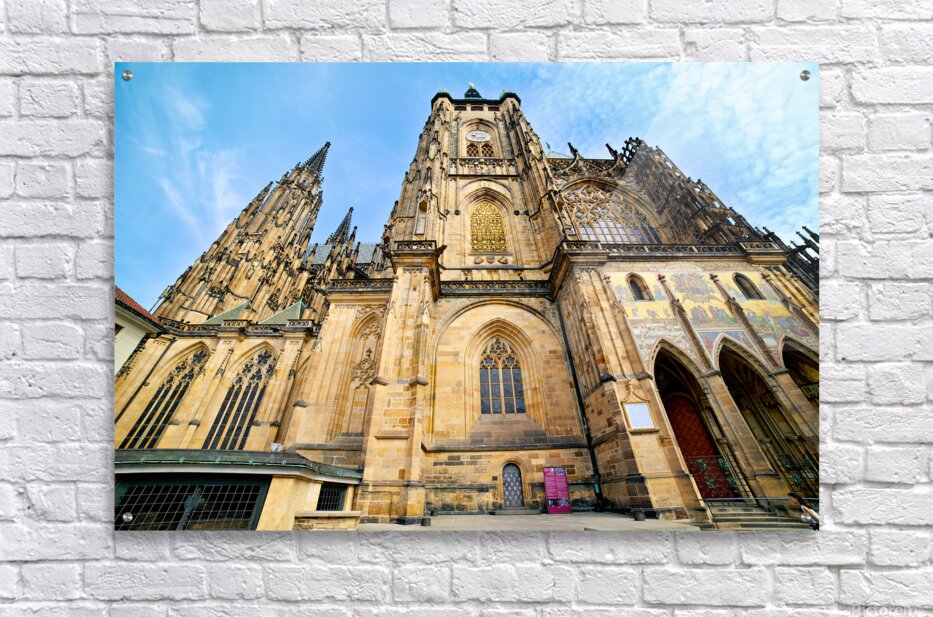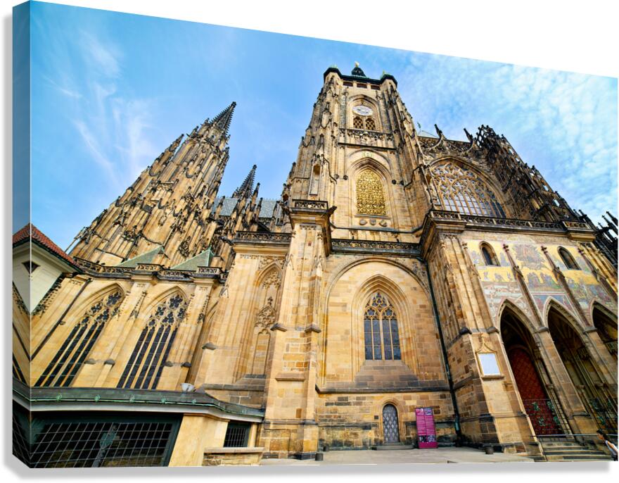 ABOUT THIS ARTWORK: ORNATE ST. VITUS CATHEDRAL FACADE AGAINST A BLUE SKY.