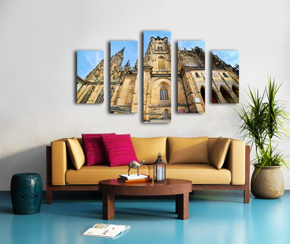 Ornate St. Vitus Cathedral facade against a blue sky. Frame print