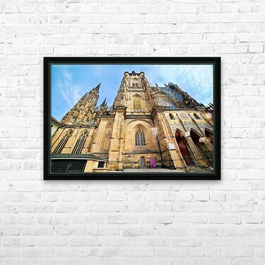 Ornate St. Vitus Cathedral facade against a blue sky. Picture Frame Printing