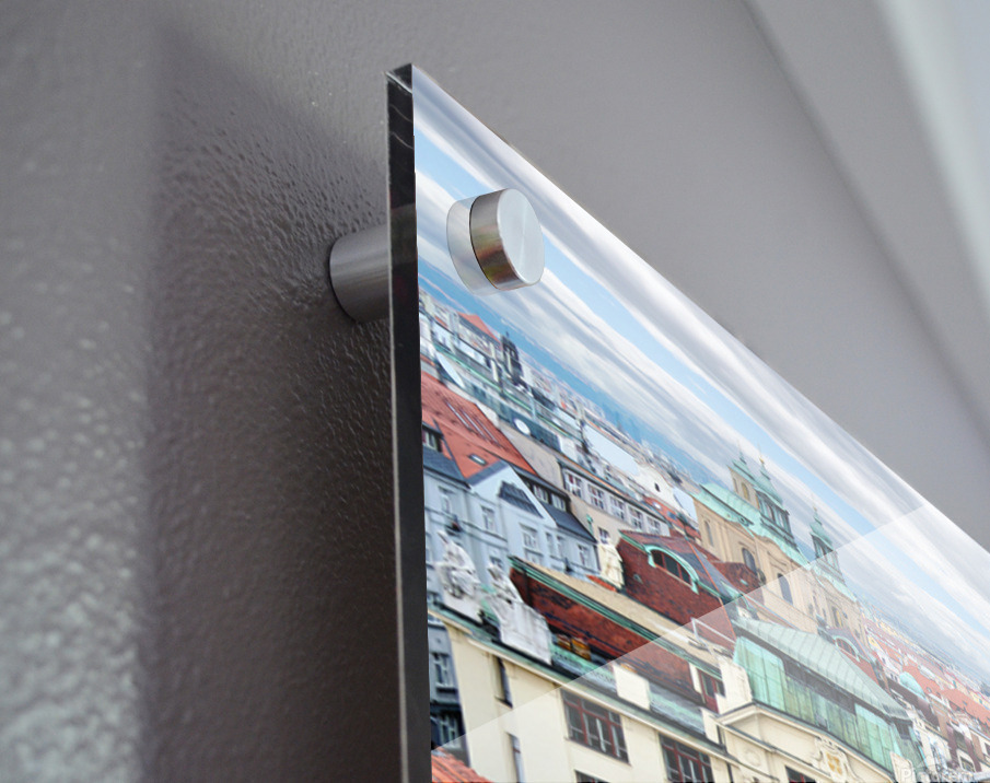 Printed to the edge - Ready to hang - provided with 4 premium polished aluminum stand off ( wall screws and mounting hardware provided )