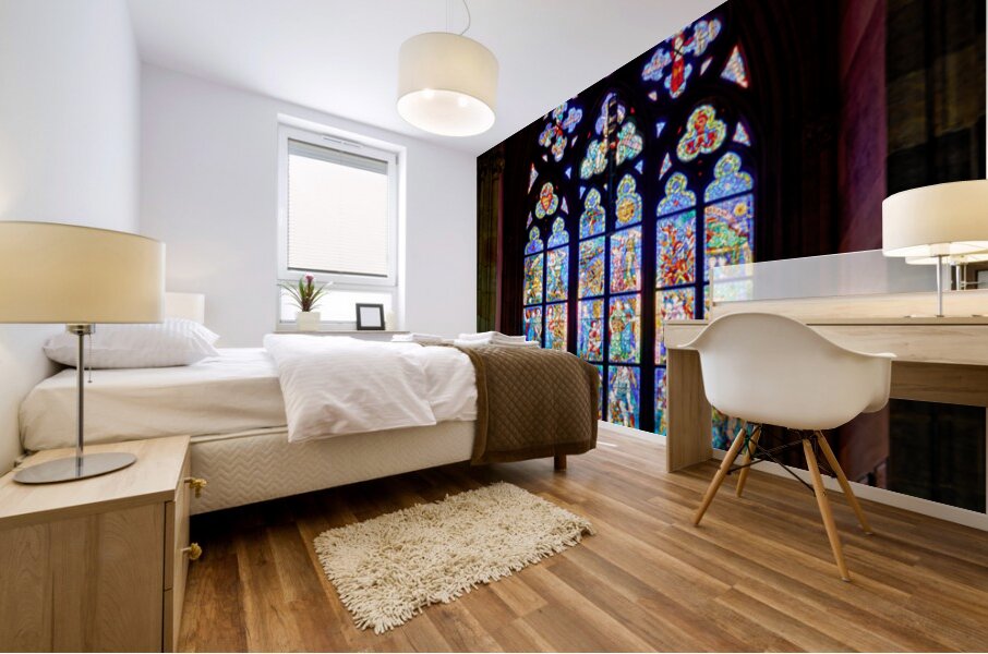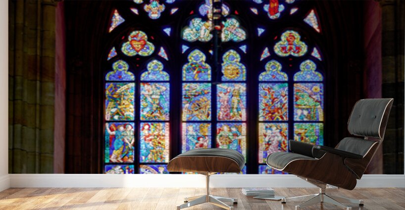 Alfons Muchas stained-glass window in St. Vitus Cathedral Prague Czech Republic commissioned by První ?eská Vzájemná Pojiš?ovna in 1927.