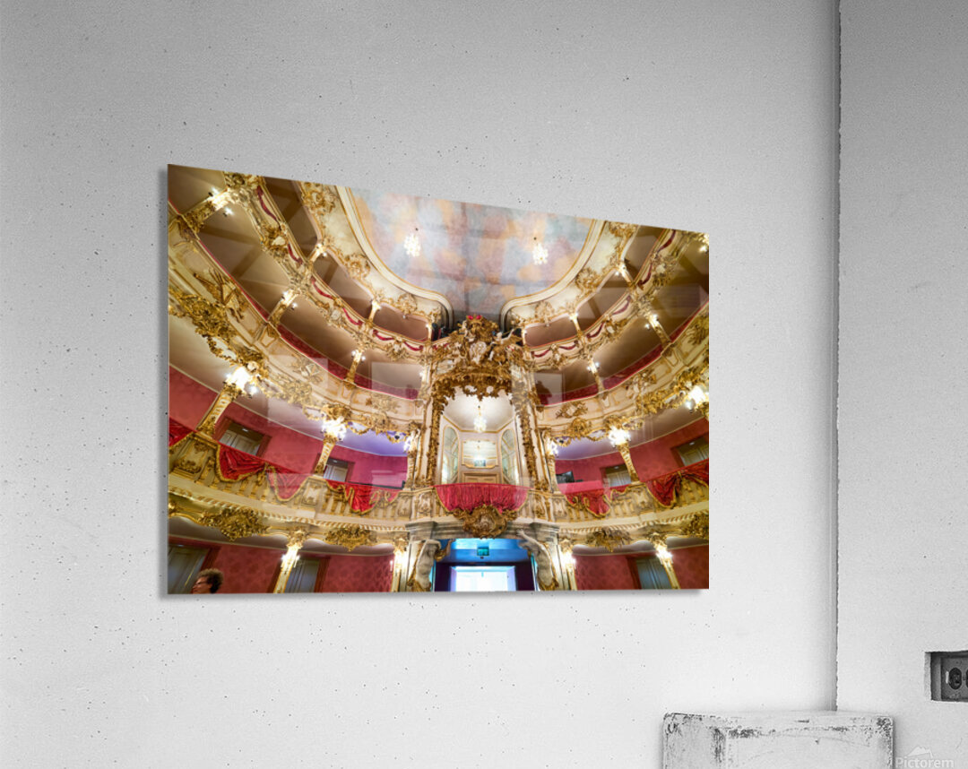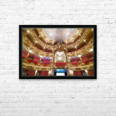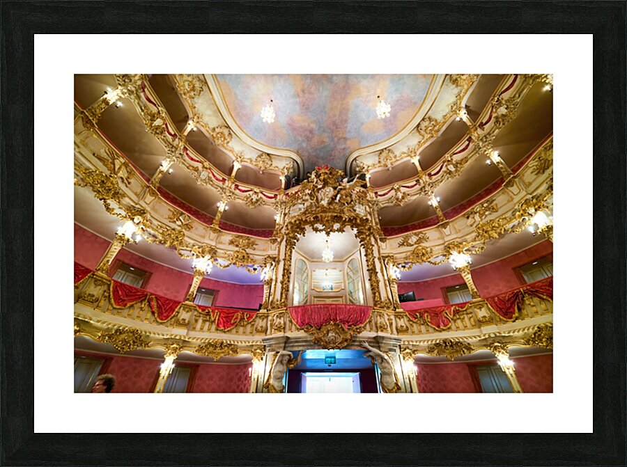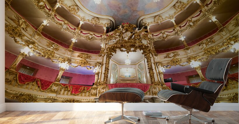 Cuvillies Theatre shows ornate decorations and detailed design inside Residenz Palace in Munich. Visitors observe the grand architecture.