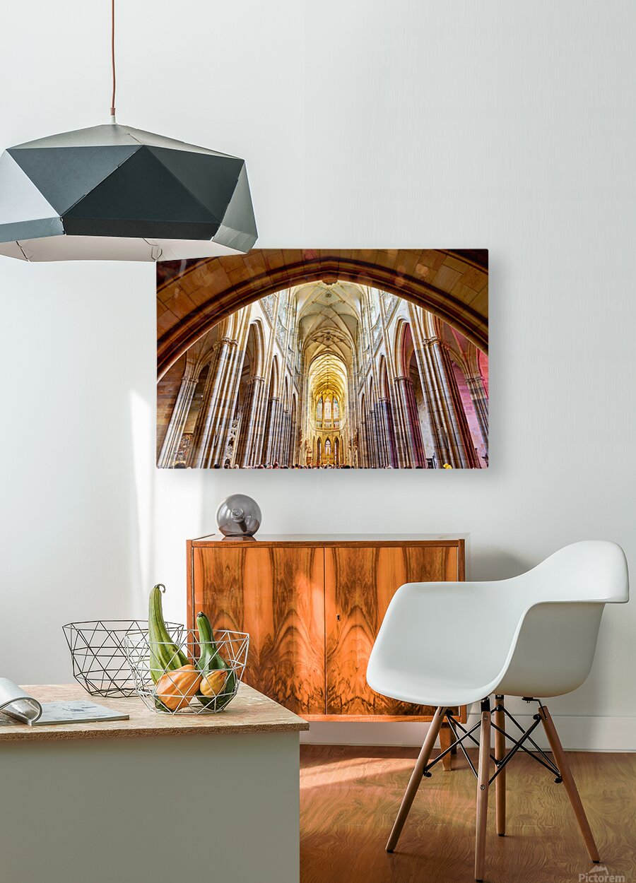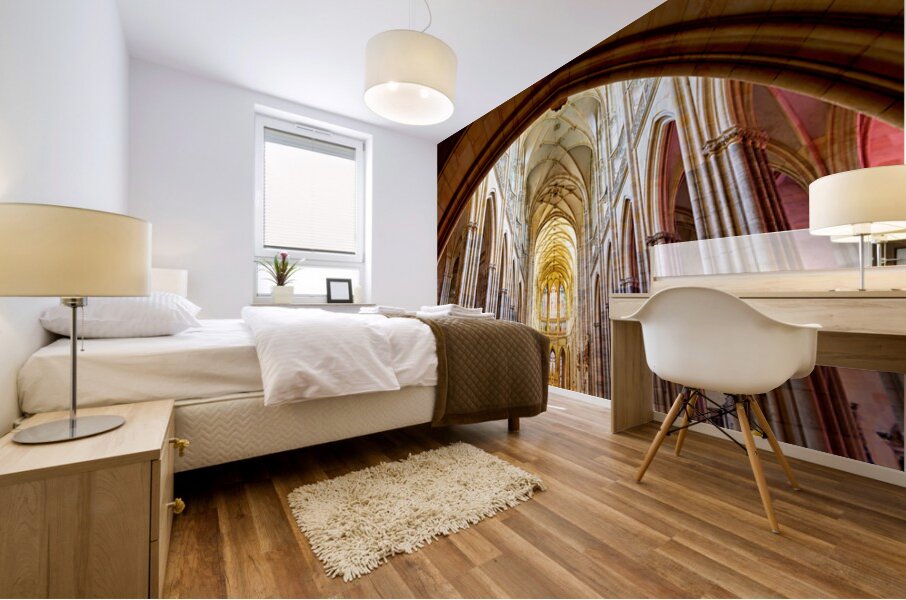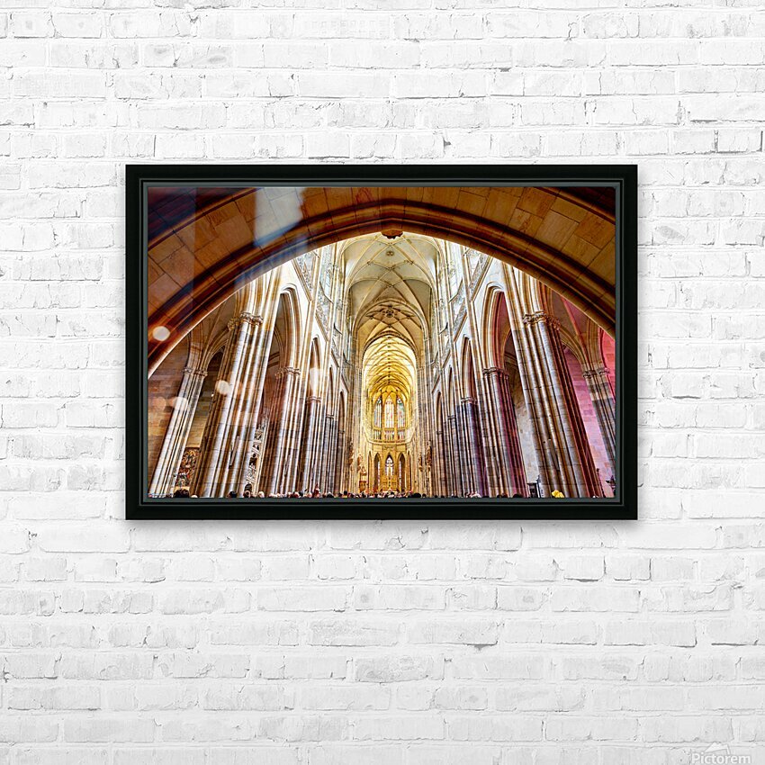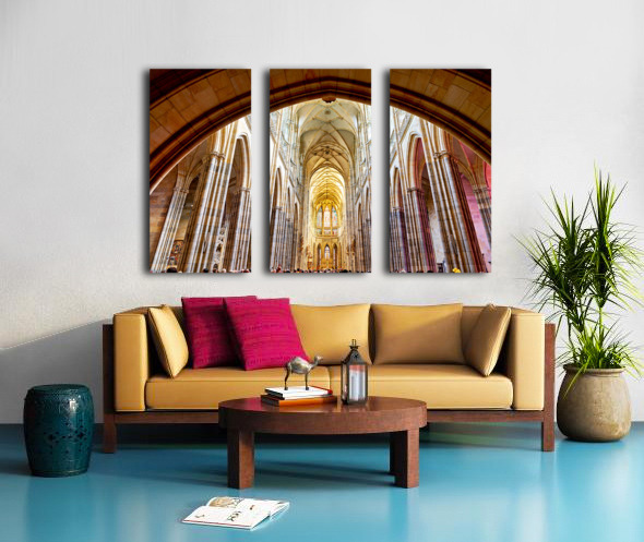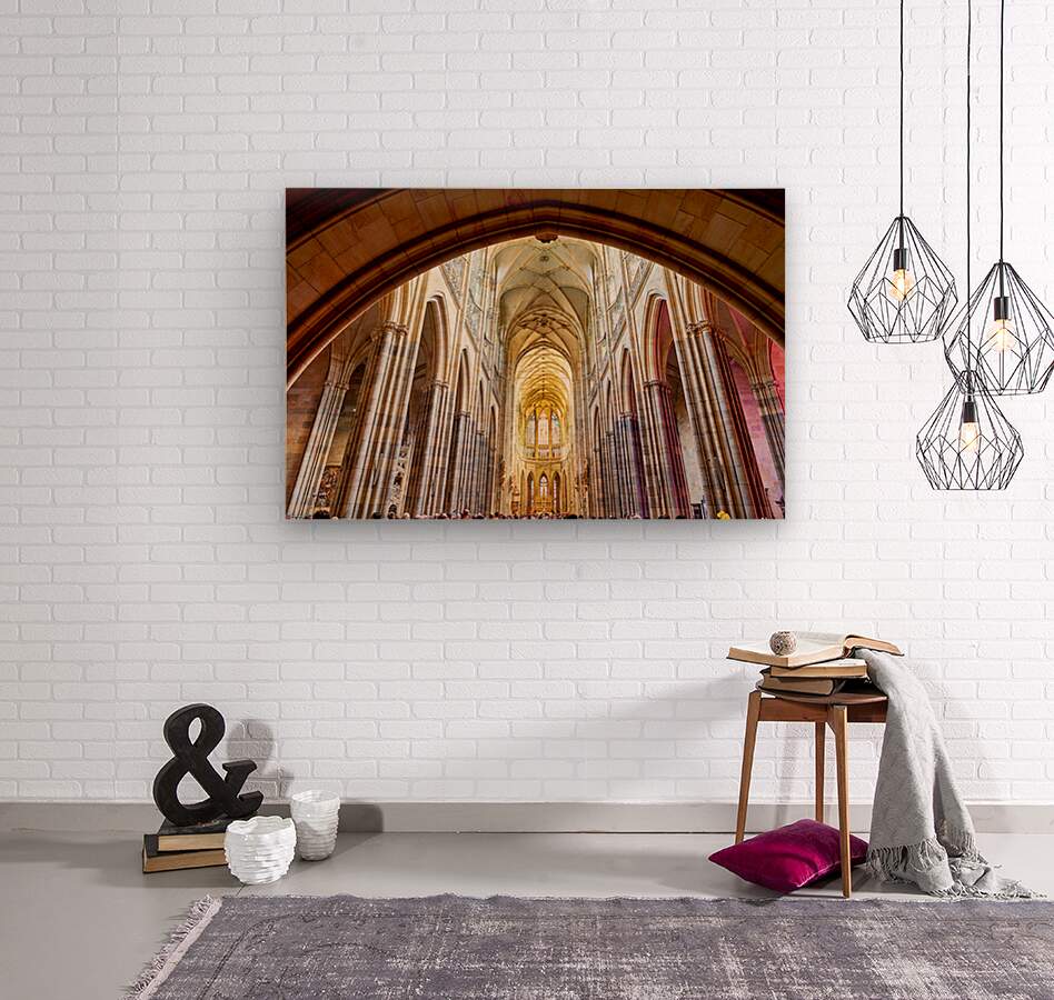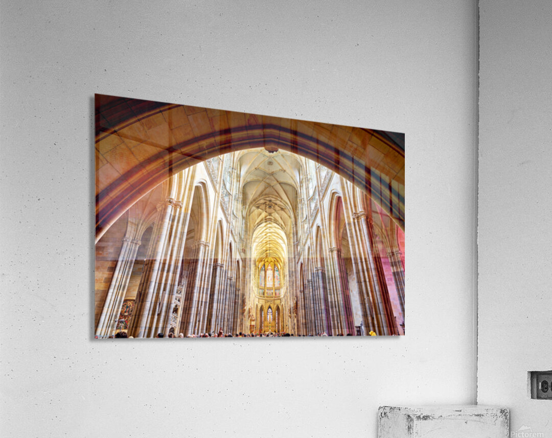 Crowds explore the majestic interior of St. Vitus Cathedral in Prague Czech Republic marveling at its intricate Gothic design and soaring arches.