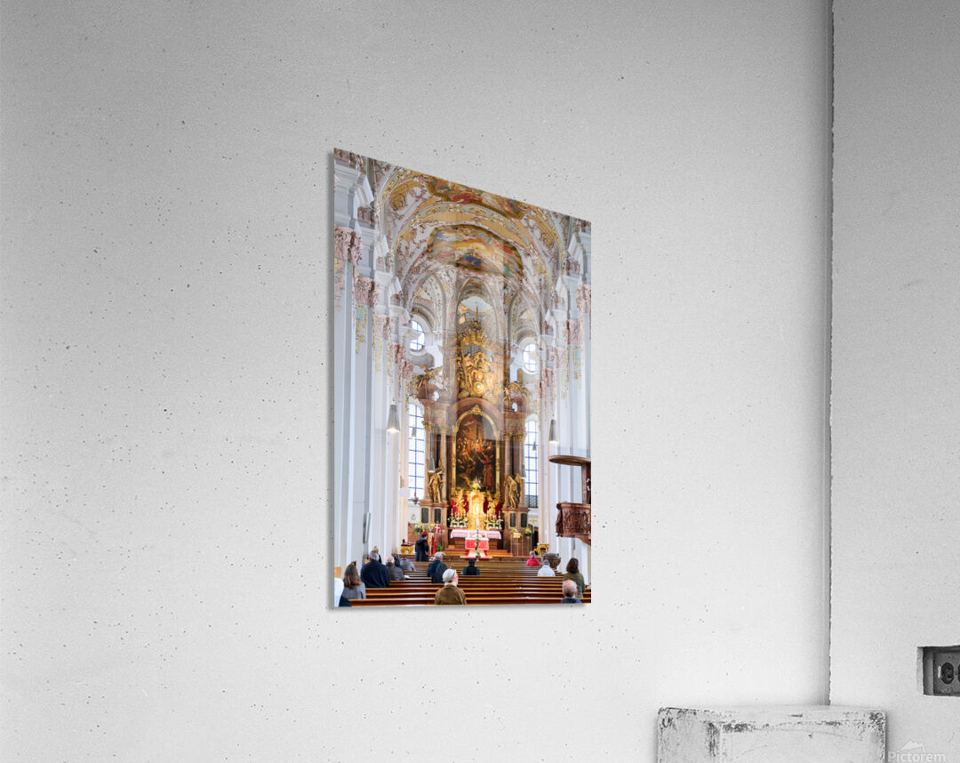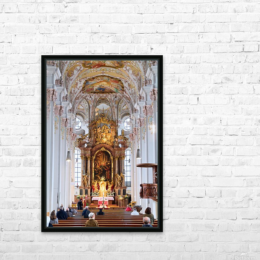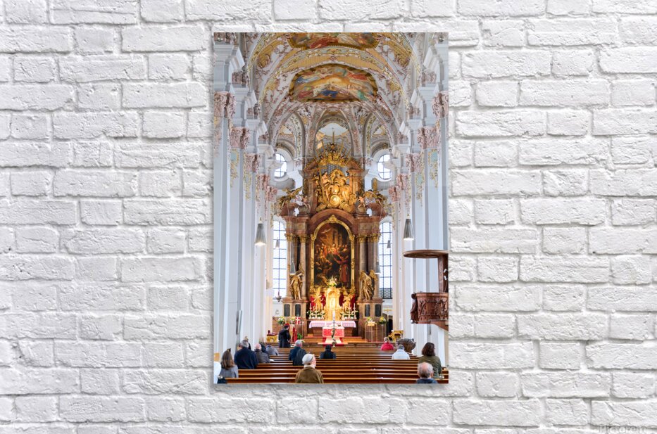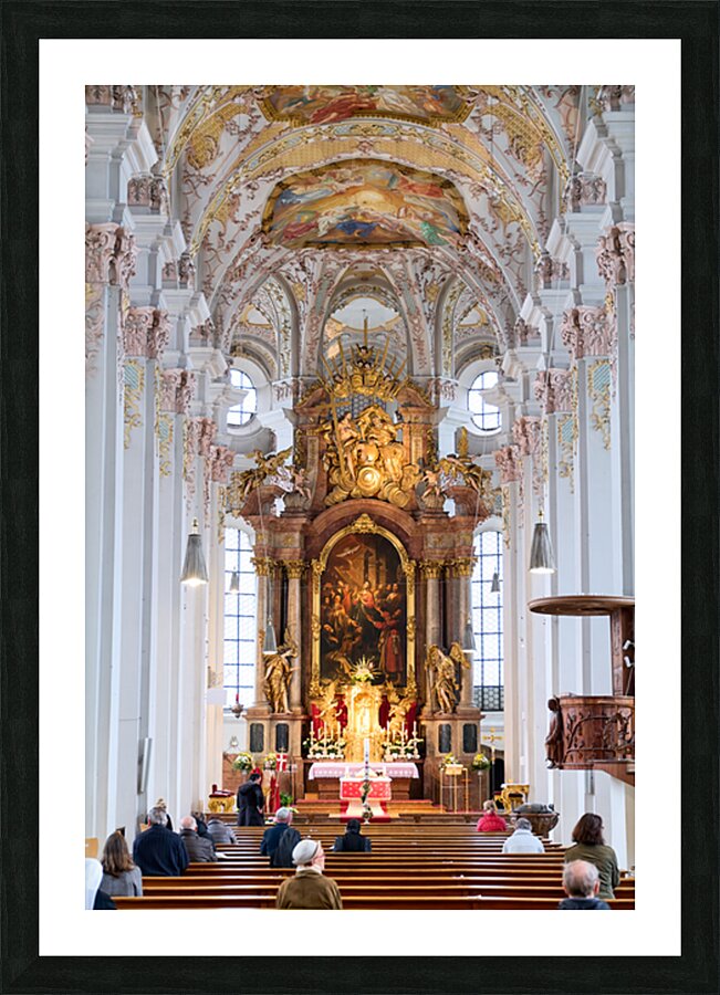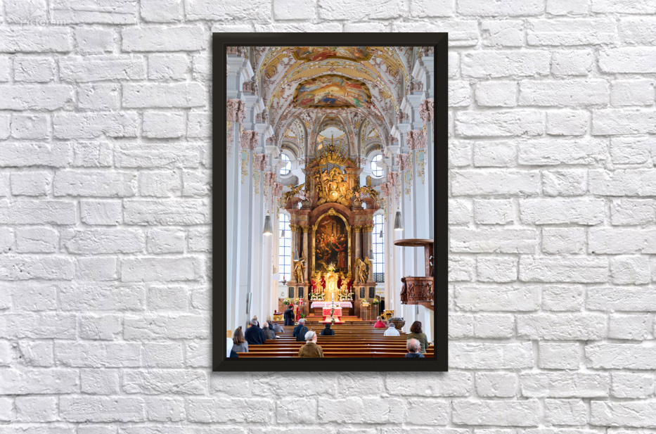 "Visitors gather inside Heilig Geist Kirche in Munich during serv" in a framed print.