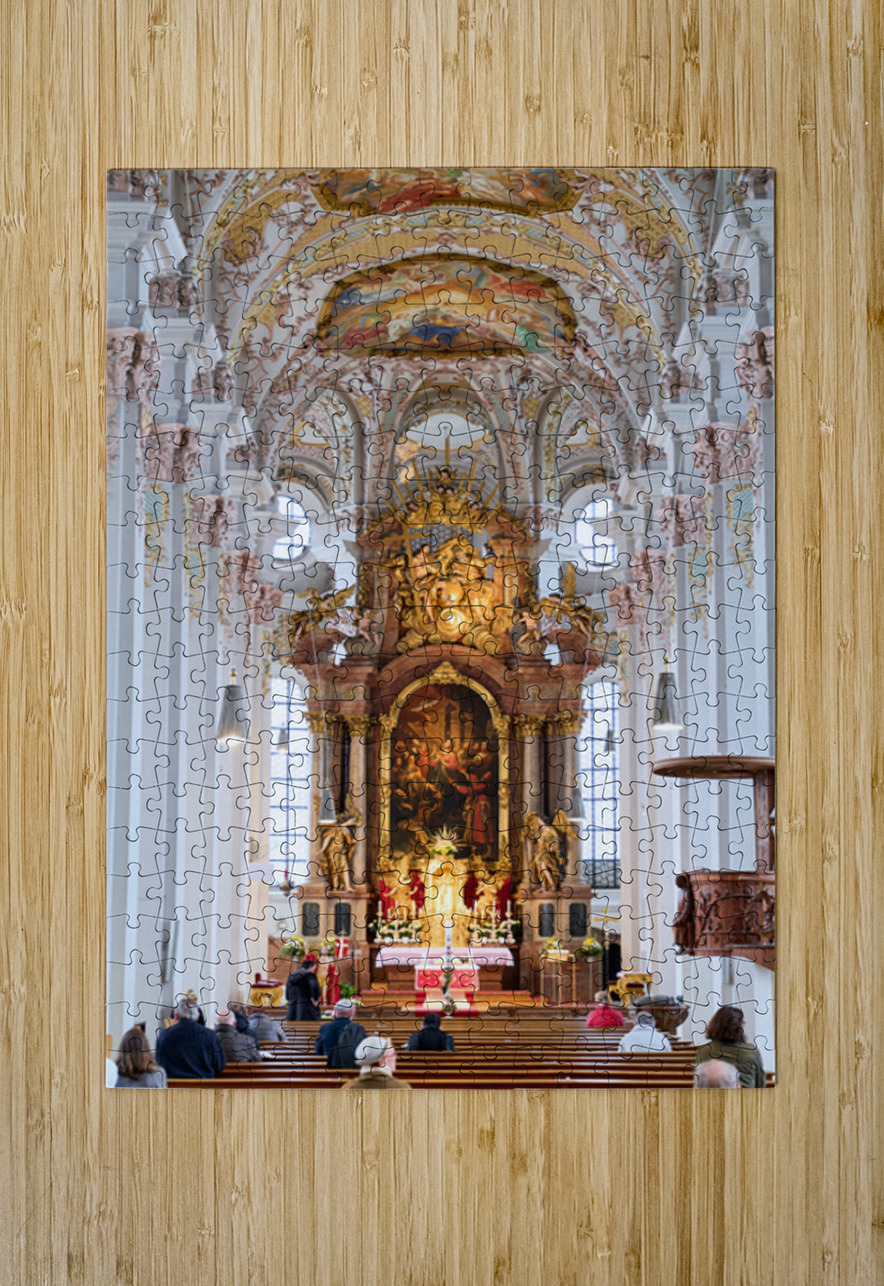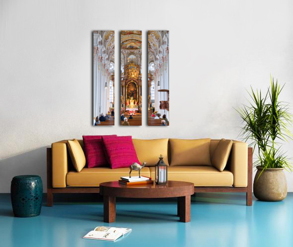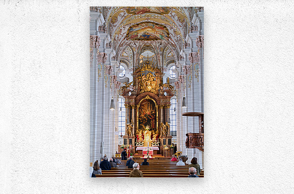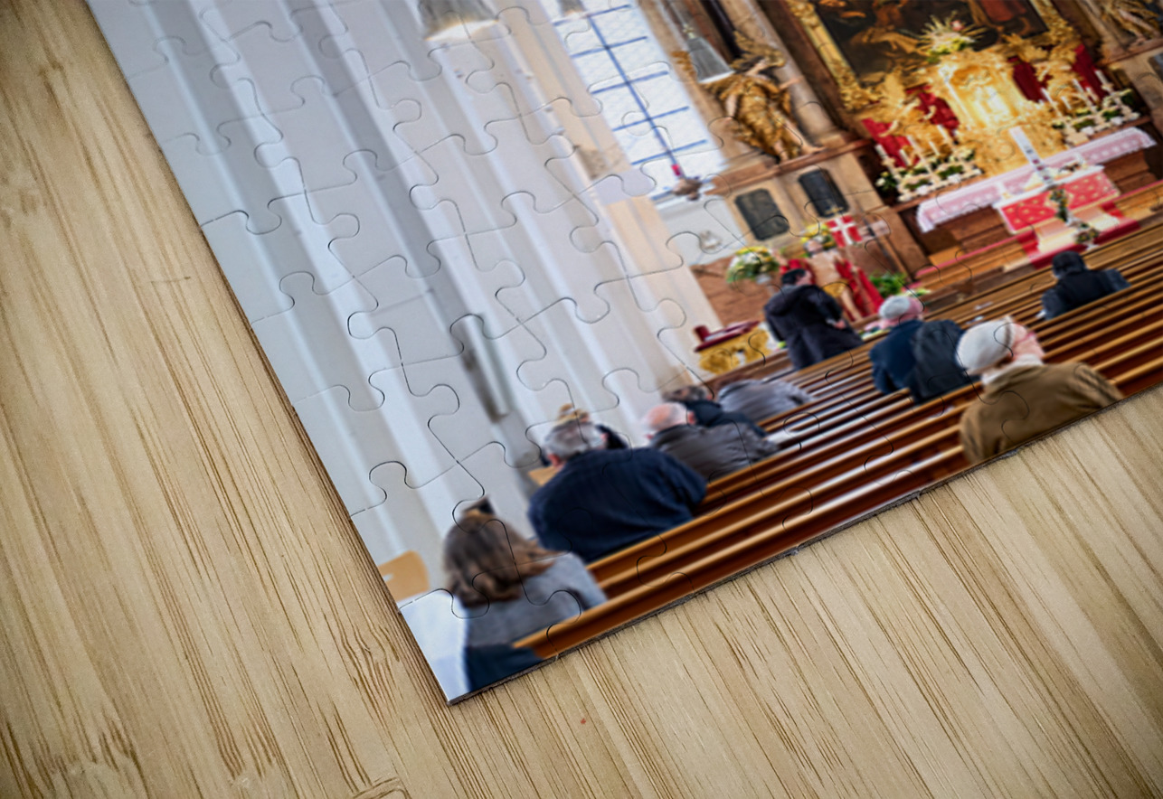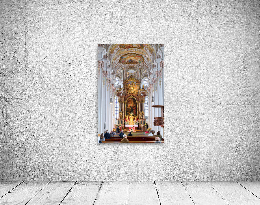 "Visitors gather inside Heilig Geist Kirche in Munich during serv" in a framed print.