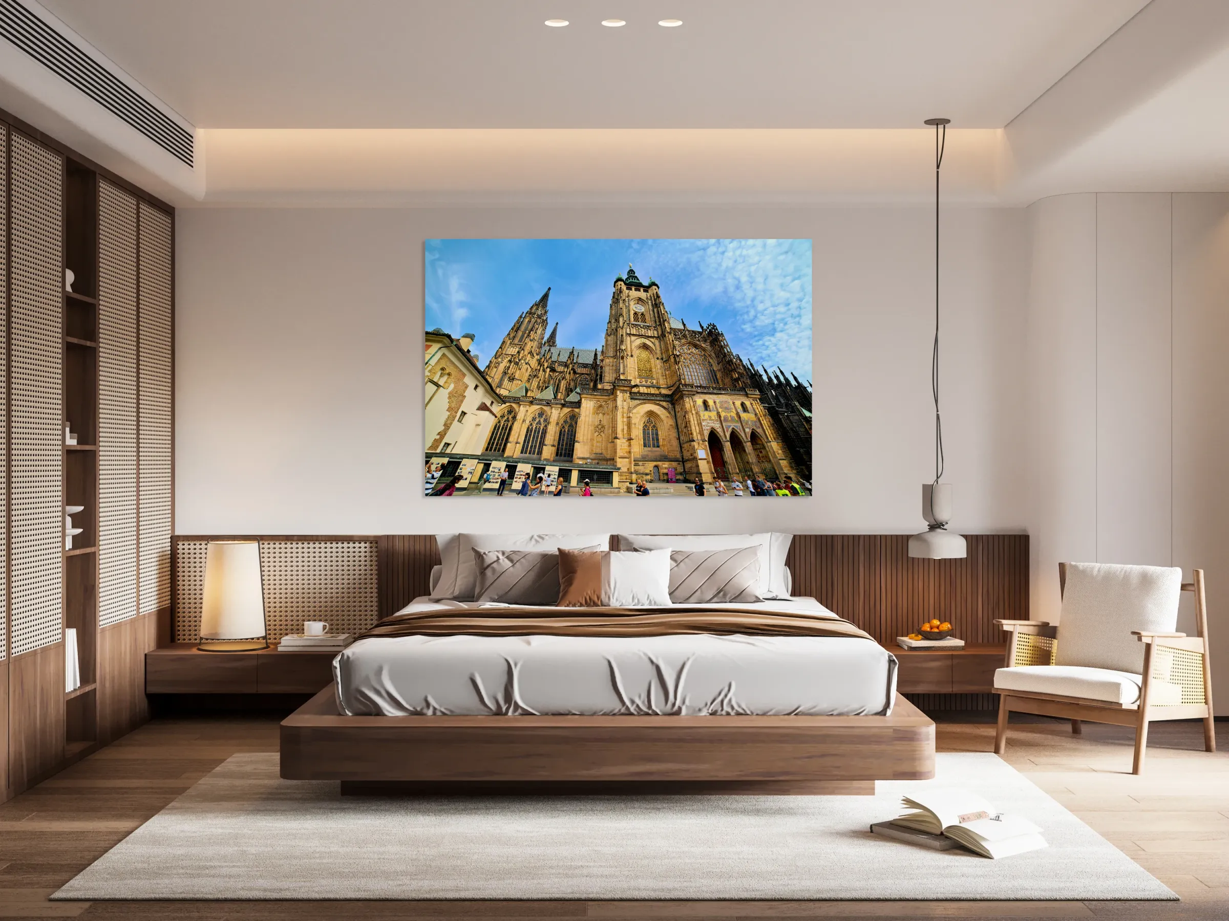 ABOUT THIS ARTWORK: MAJESTIC ST. VITUS CATHEDRAL PRAGUE UNDER A BLUE SKY.