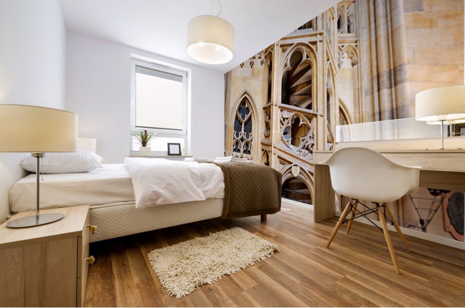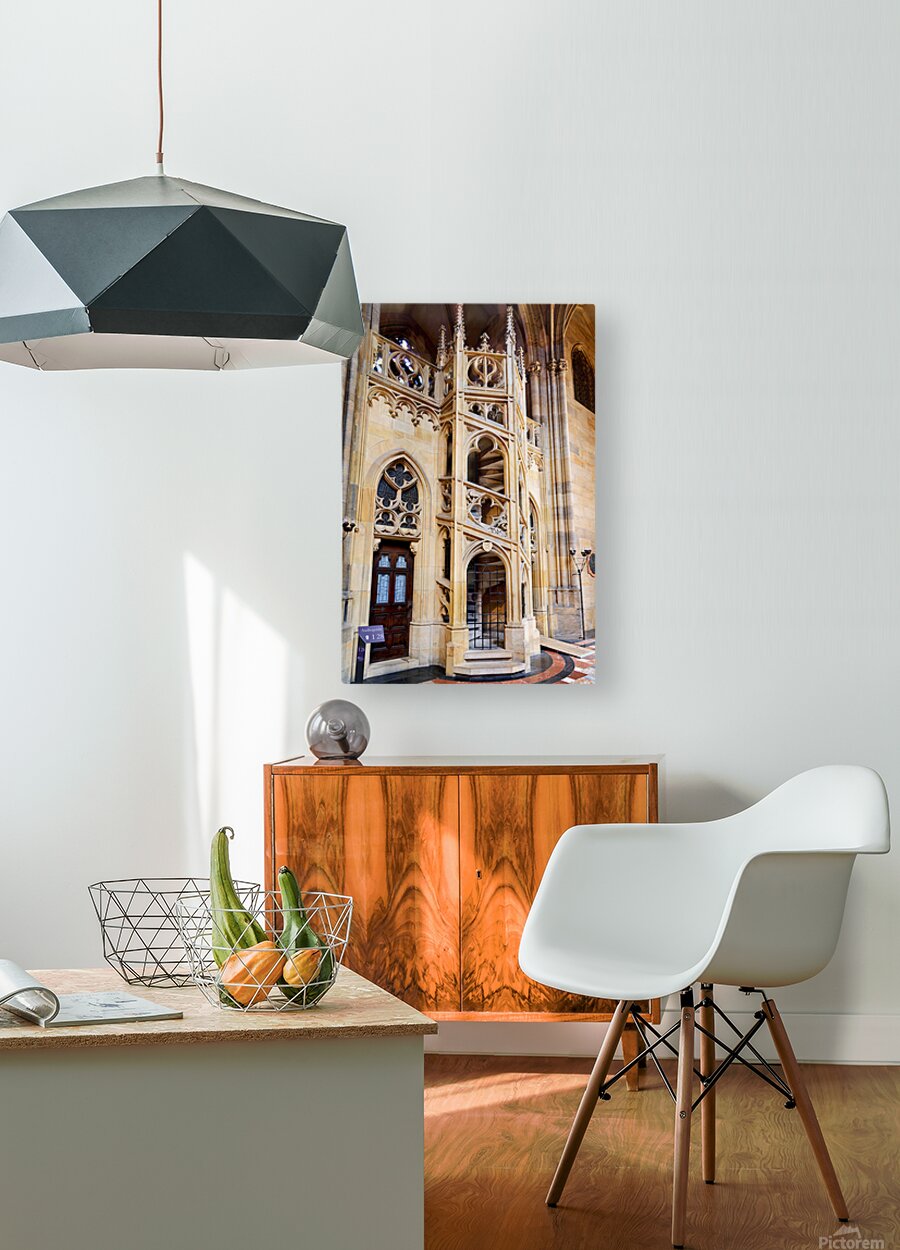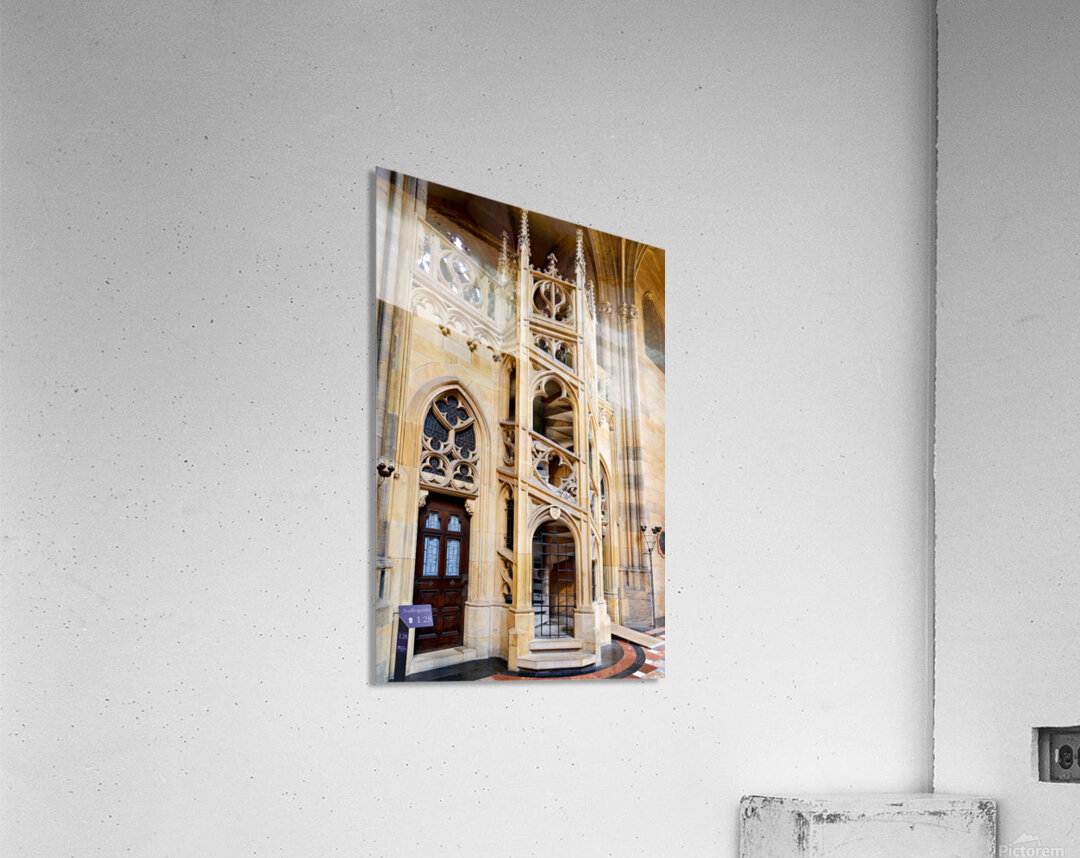 Get this artwork "Ornate Gothic spiral staircase and architecture." in a framed print.