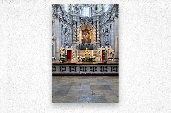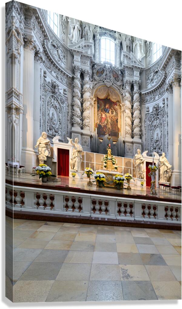 Get this artwork "Interior view of Theatinerkirche in Munich with altar and sculpt" in a framed print.
