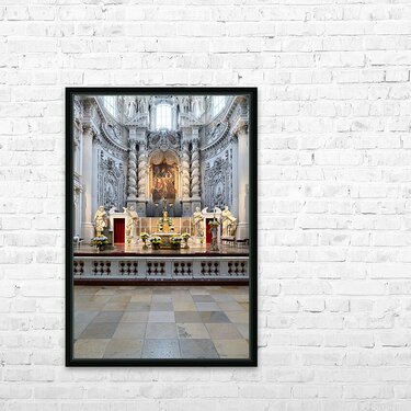 Interior view of Theatinerkirche in Munich with altar and sculpt Picture Frame Printing