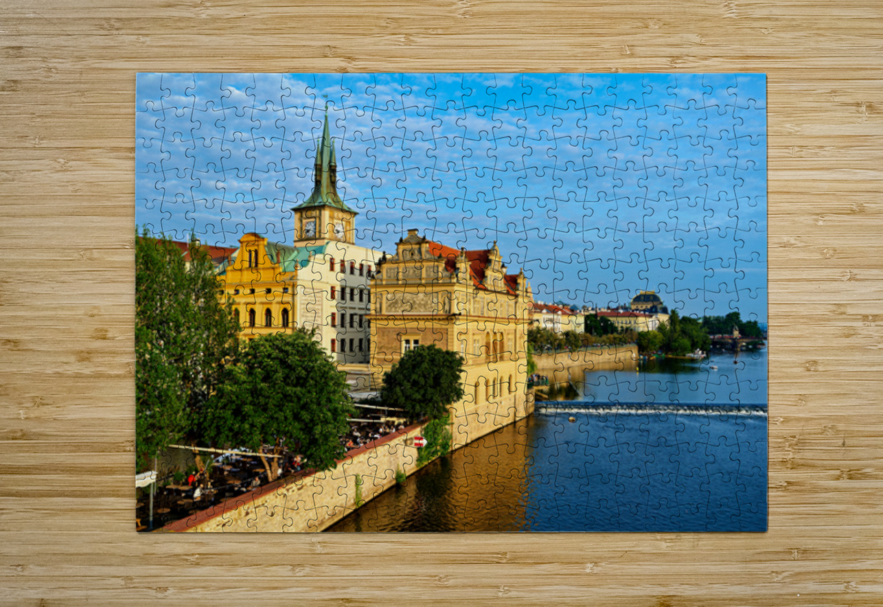 Pragues Vltava riverfront with historic architecture and lively Marco Brivio Puzzle printing