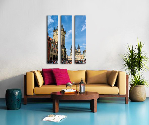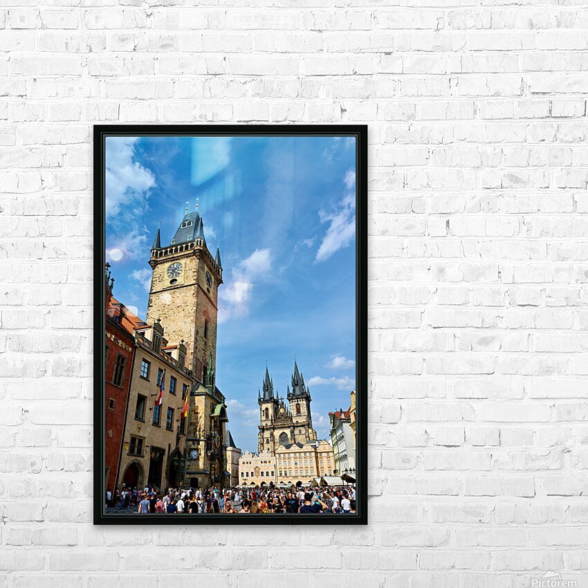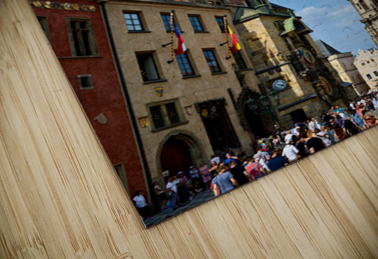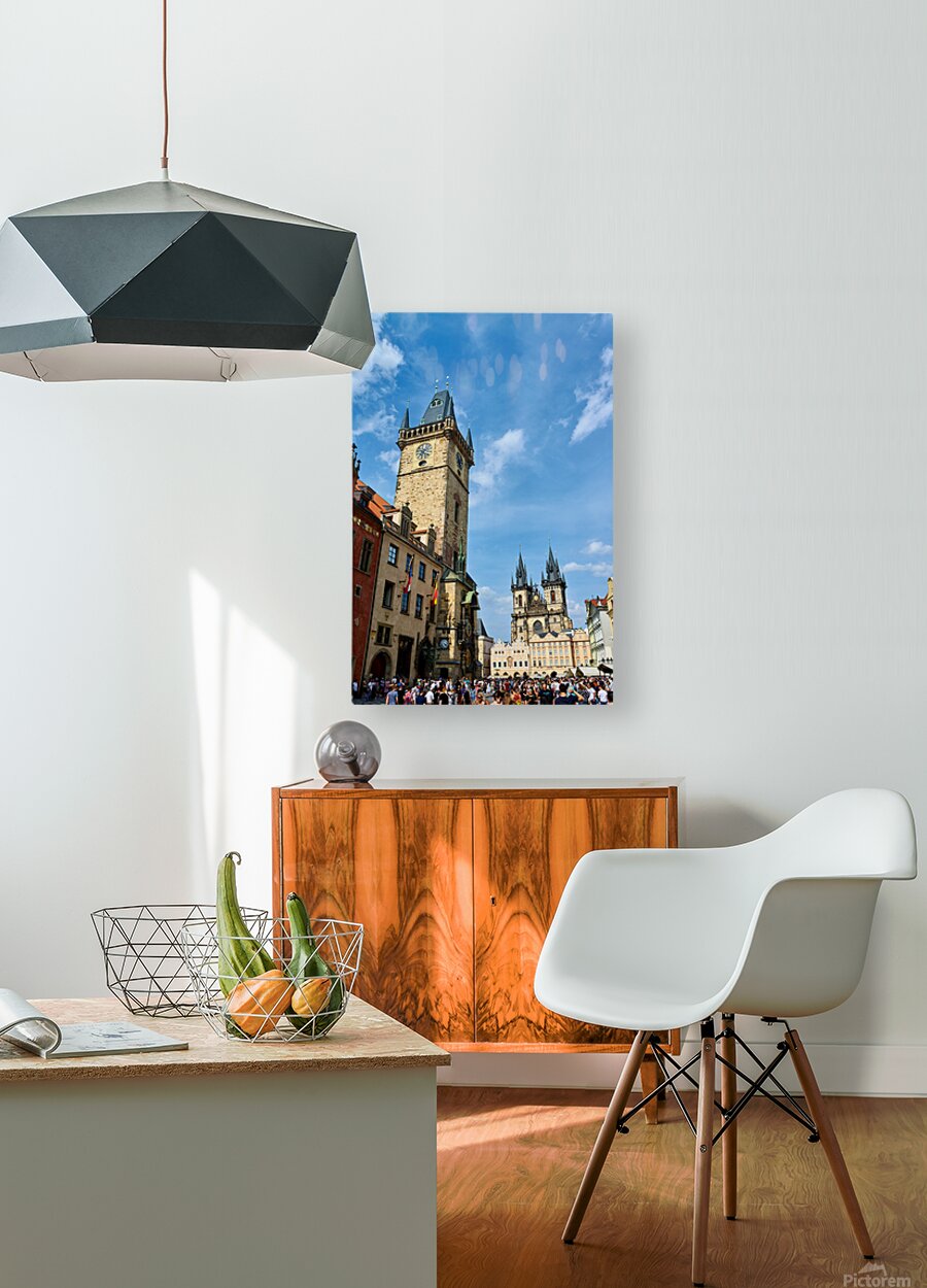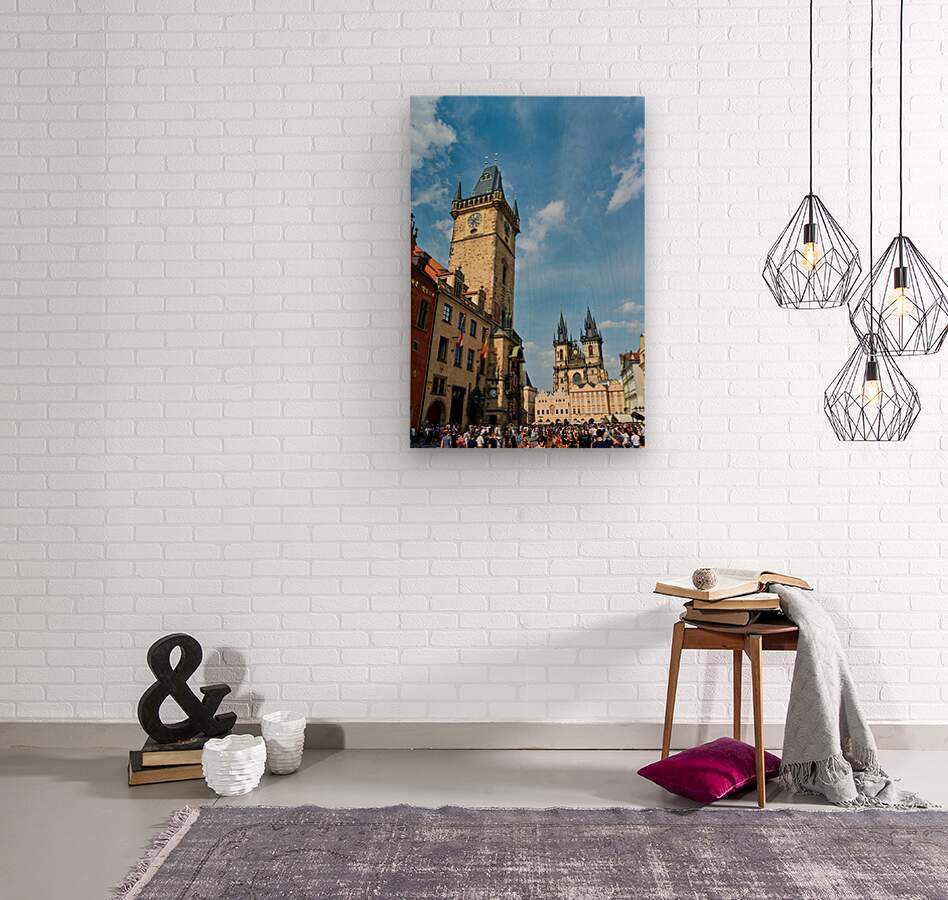 Crowds gather in Pragues Old Town Square Czech Republic admiring the historic Astronomical Clock and the Church of Our Lady before Týn.