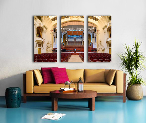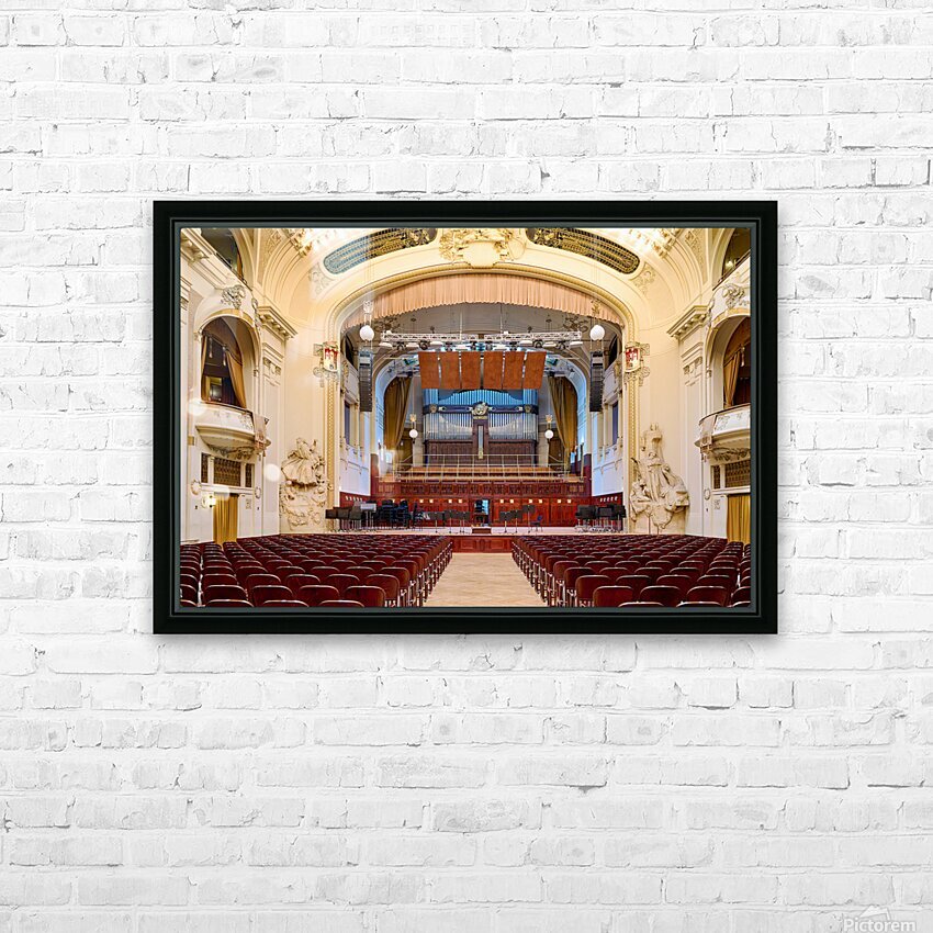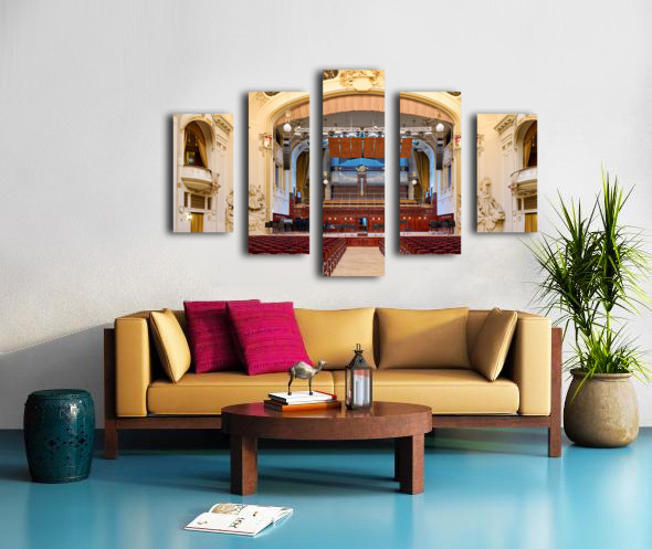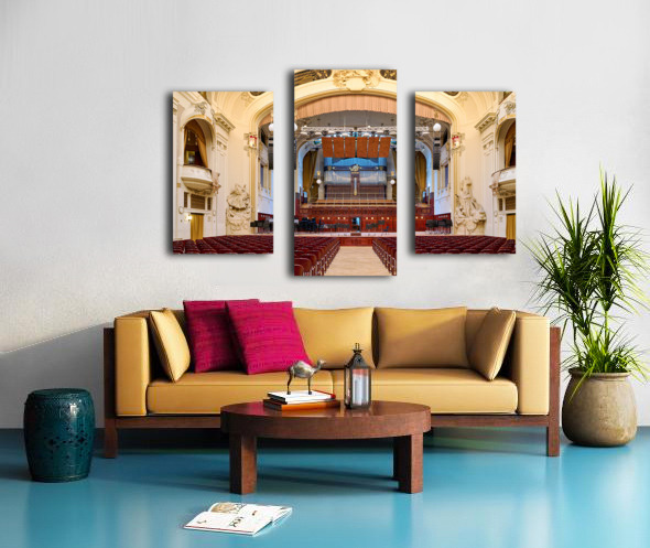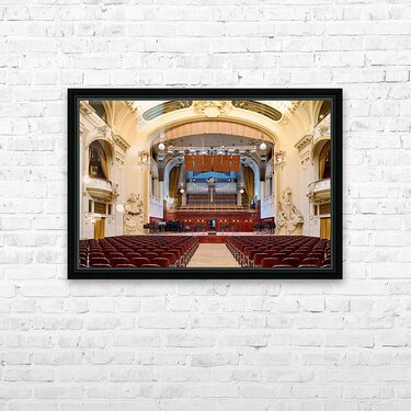 Grand concert hall with organ and empty seats. Frame print