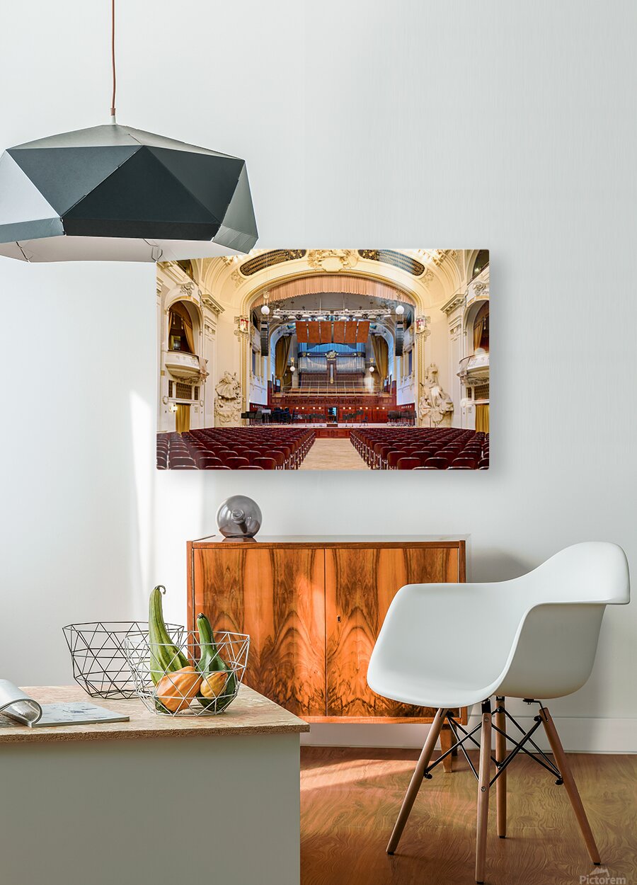 Get this artwork "Grand concert hall with organ and empty seats." in a framed print.