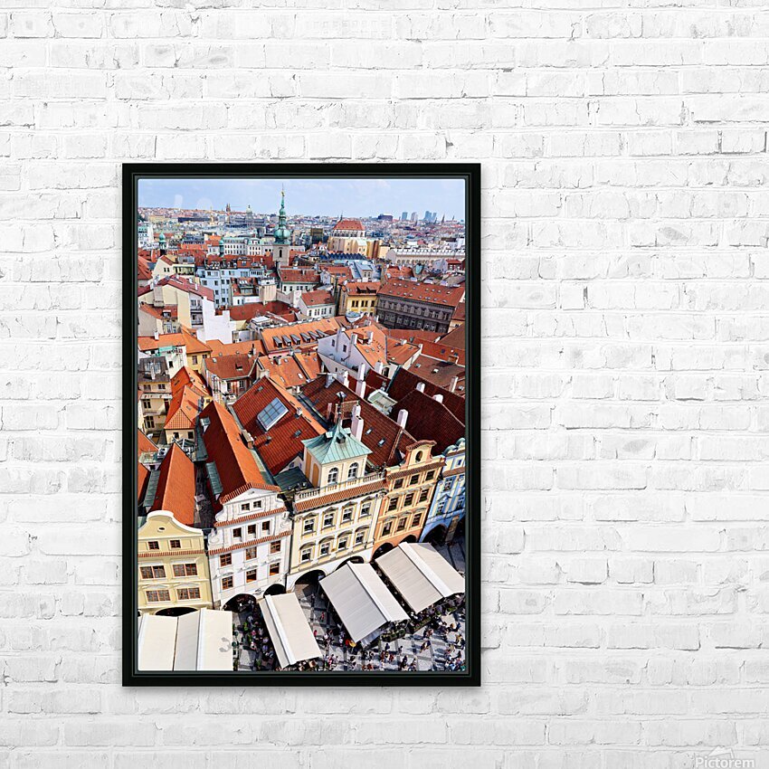 Aerial view of Pragues historic red roofed cityscape and bustli Picture Frame Printing