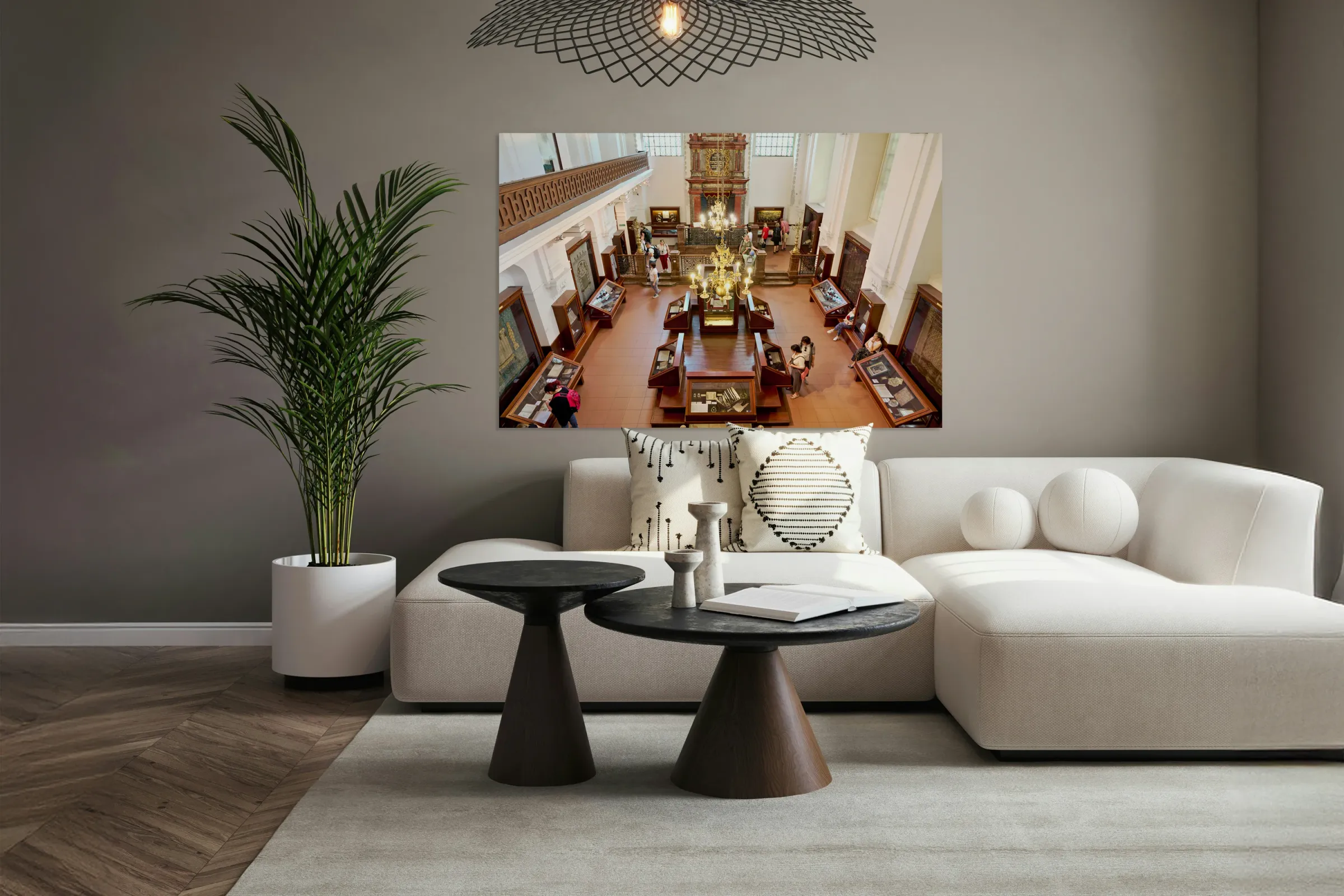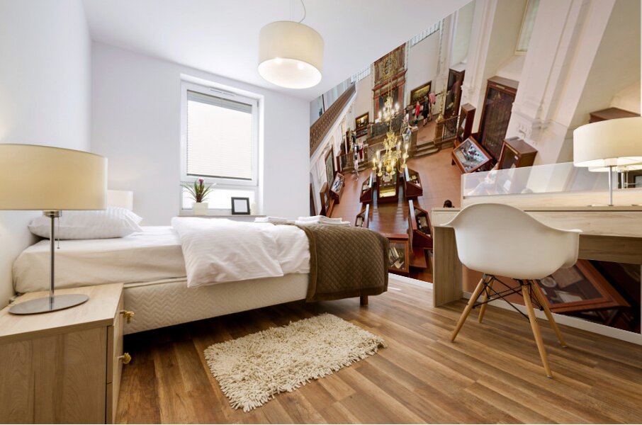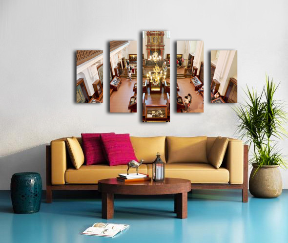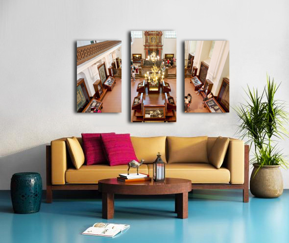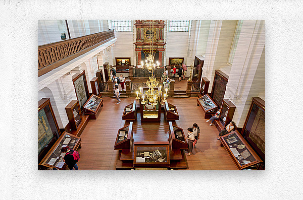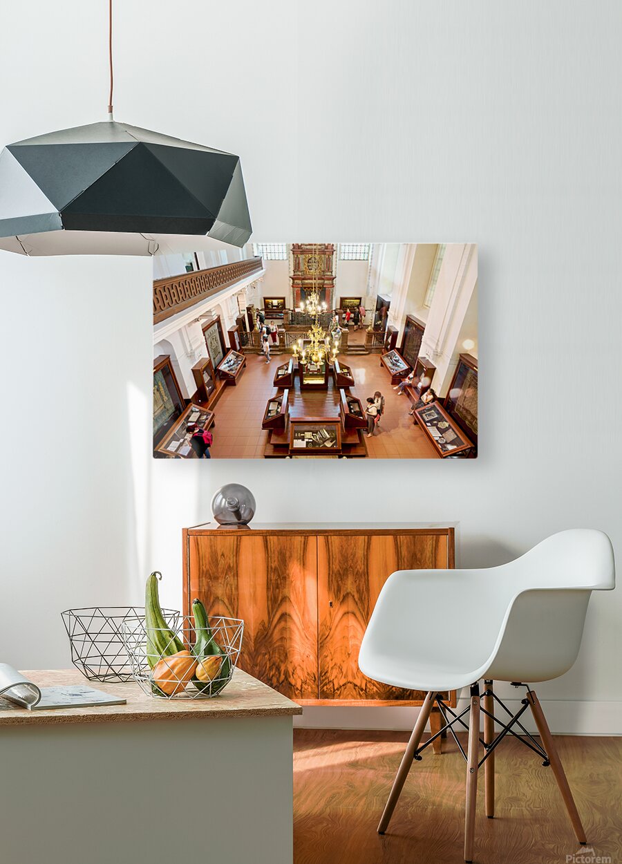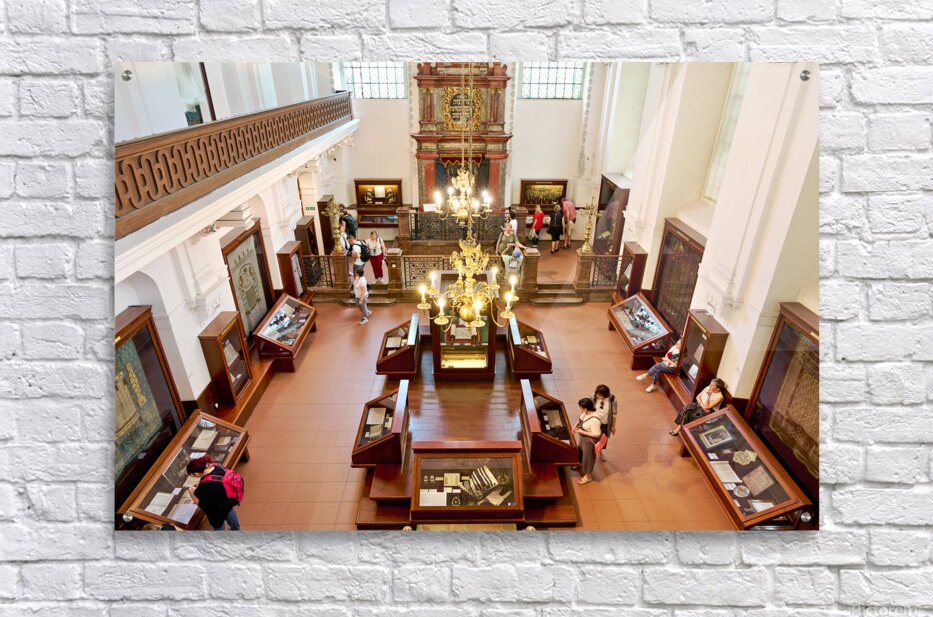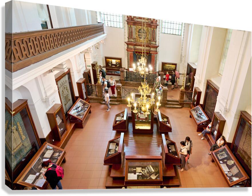 People explore a grand museum or synagogue with historical exhib Picture Frame Printing