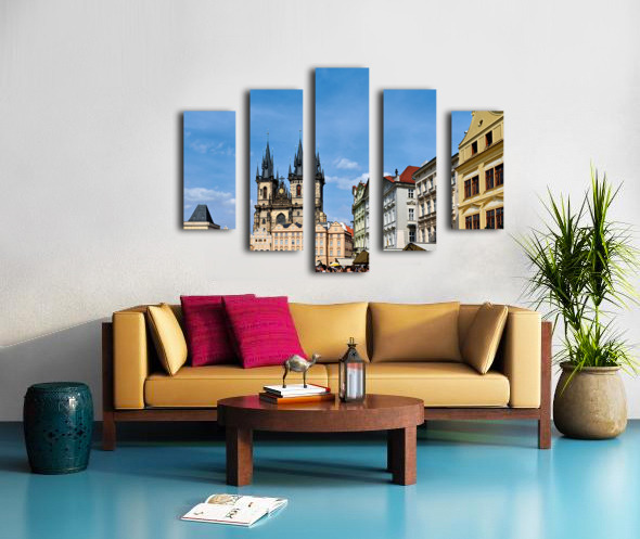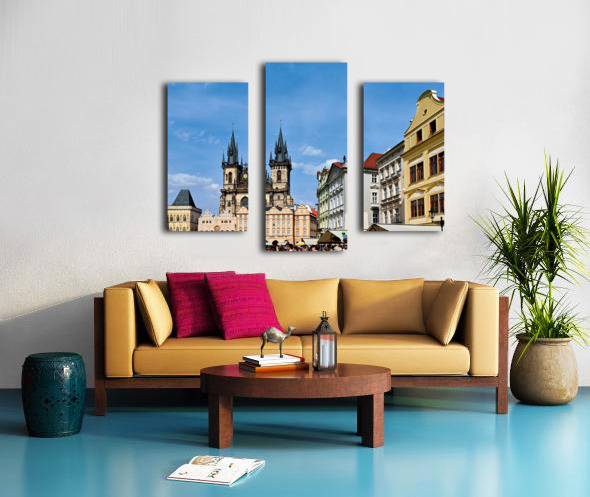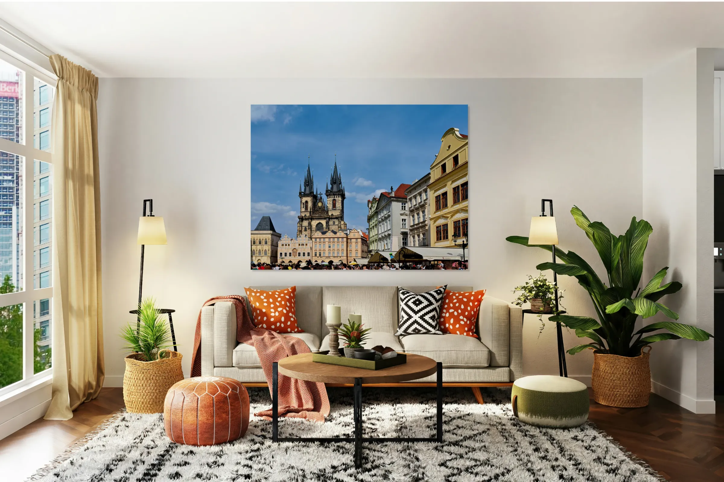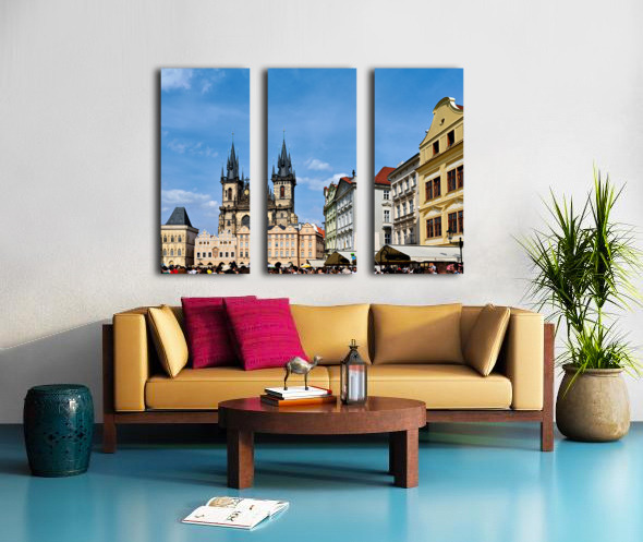 Crowded Prague Old Town Square with Týn Church. Frame print