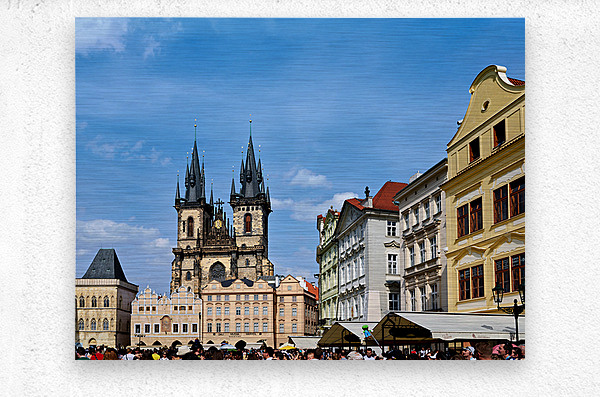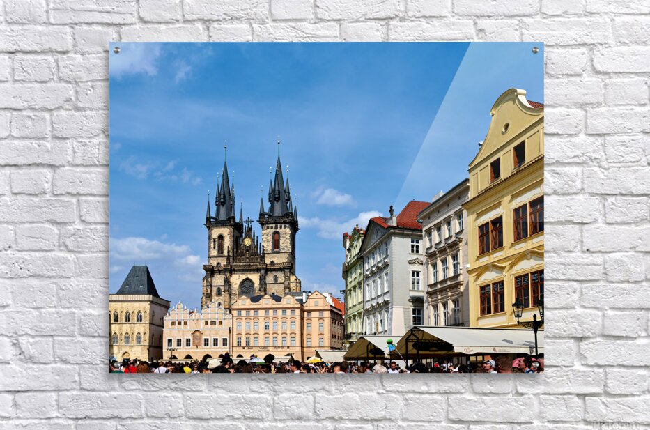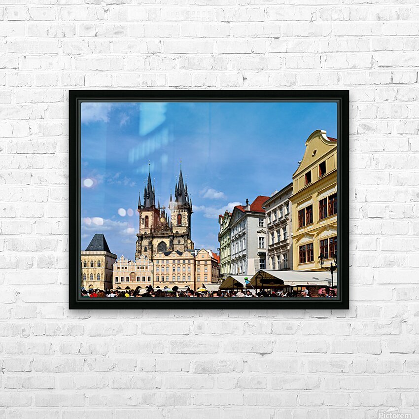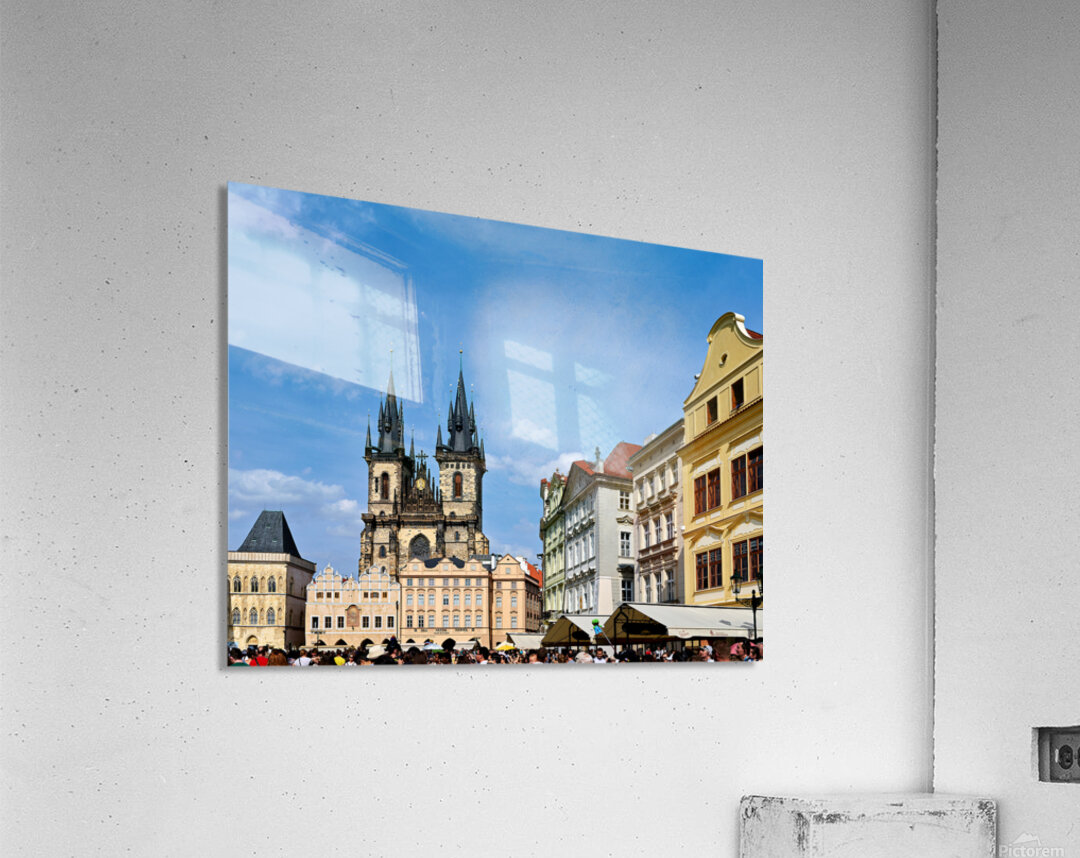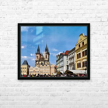 Crowded Prague Old Town Square with Týn Church. Picture Frame Printing