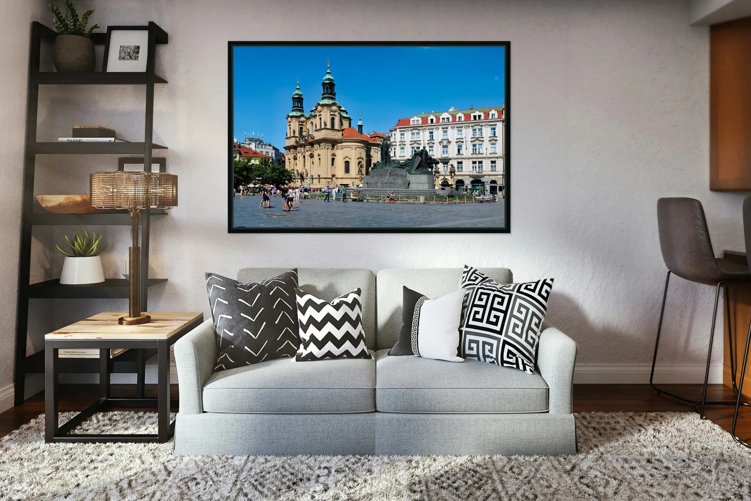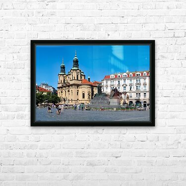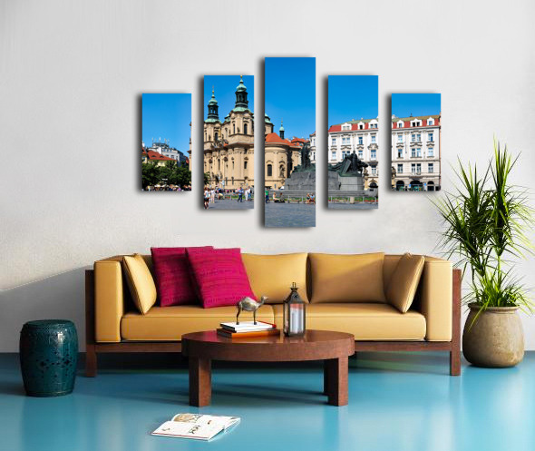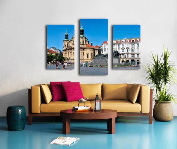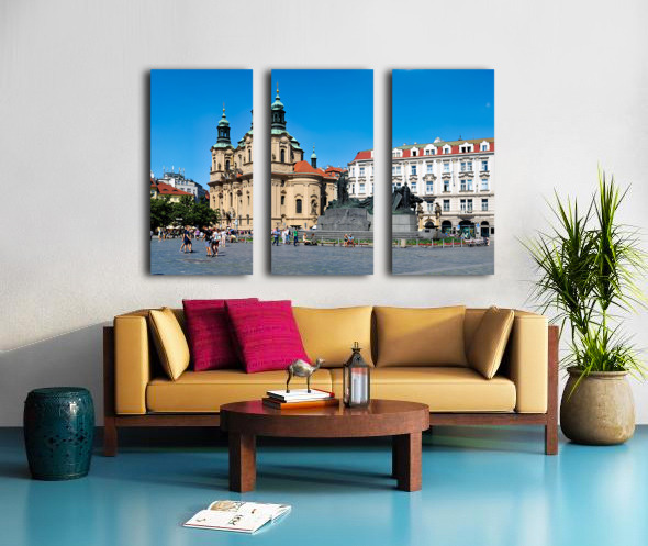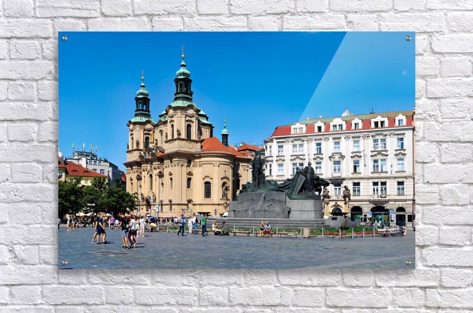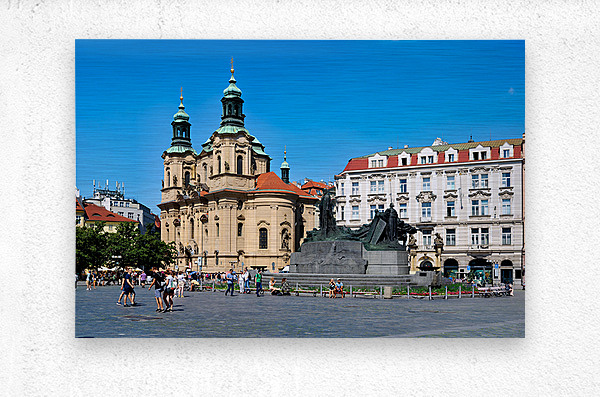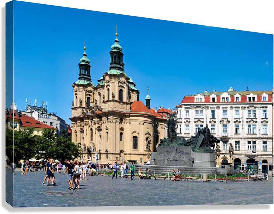 ABOUT THIS ARTWORK: PRAGUES OLD TOWN SQUARE WITH ST. NICHOLAS CHURCH AND JAN HUS MO