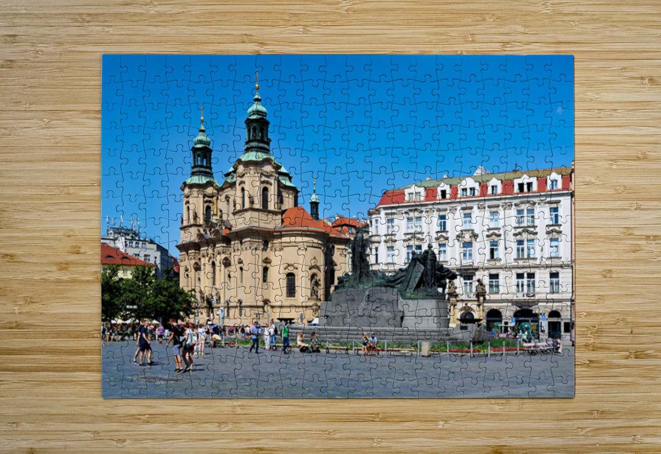 Pragues Old Town Square with St. Nicholas Church and Jan Hus Mo Marco Brivio Puzzle printing