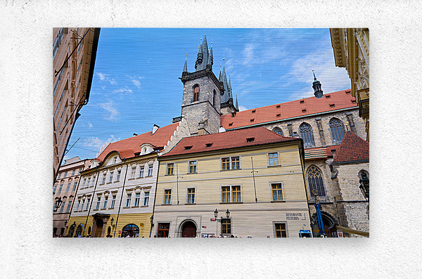 ABOUT THIS ARTWORK: PRAGUES TýN CHURCH AND HISTORIC BUILDINGS UNDER BLUE SKY.