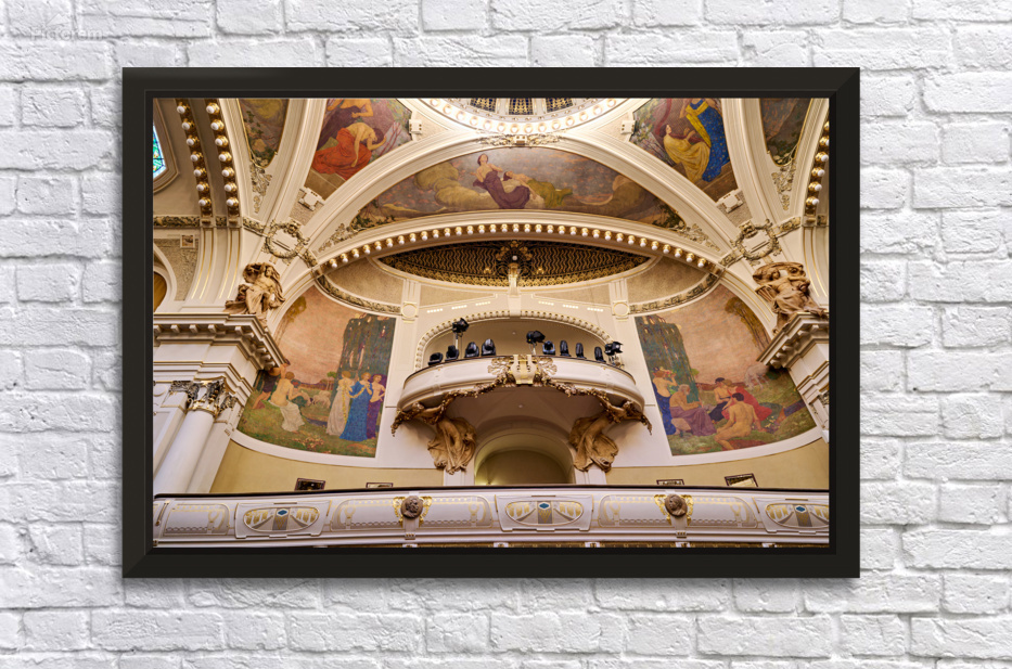 The stunning Art Nouveau interior of Smetana Hall in Pragues Municipal House featuring Alfons Muchas murals and ornate decorations ready for a perform