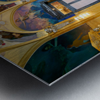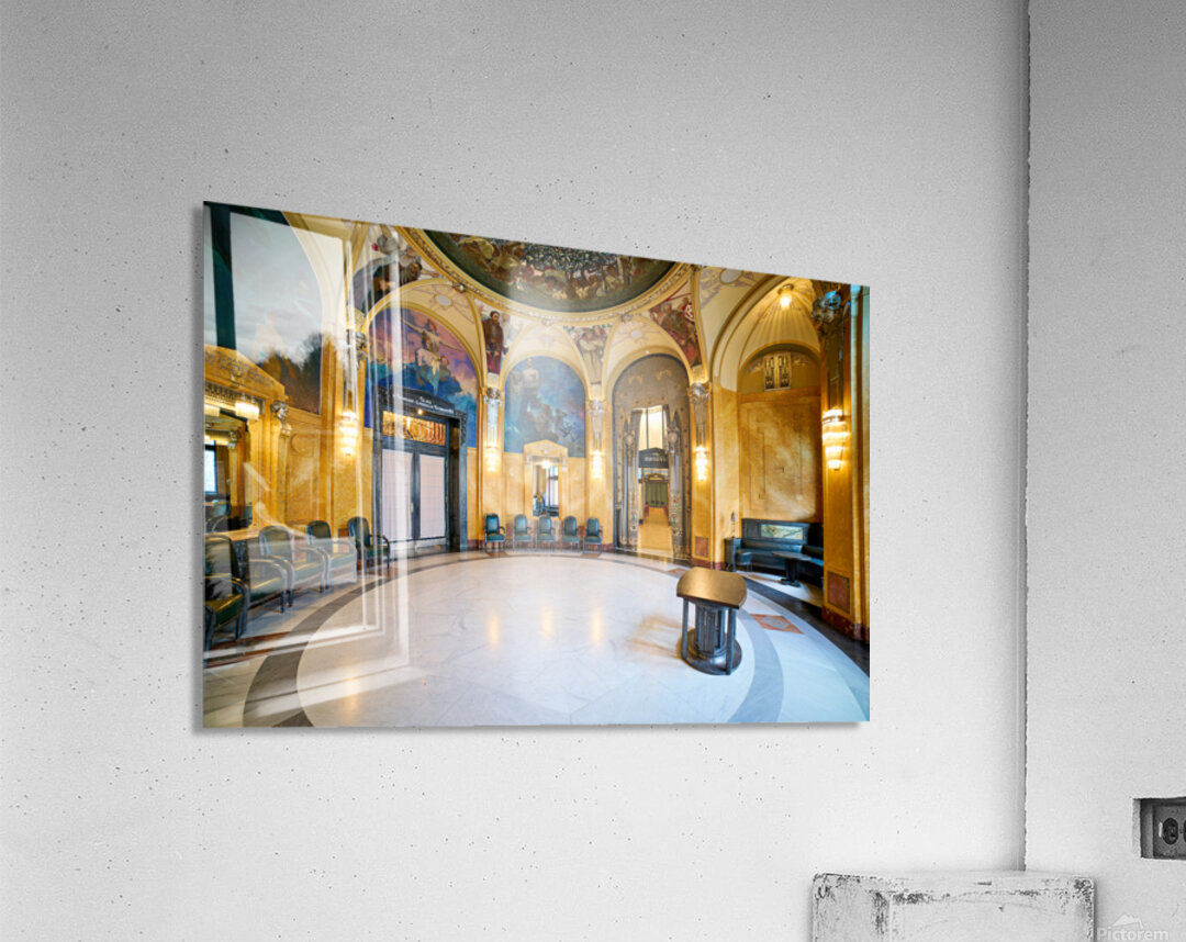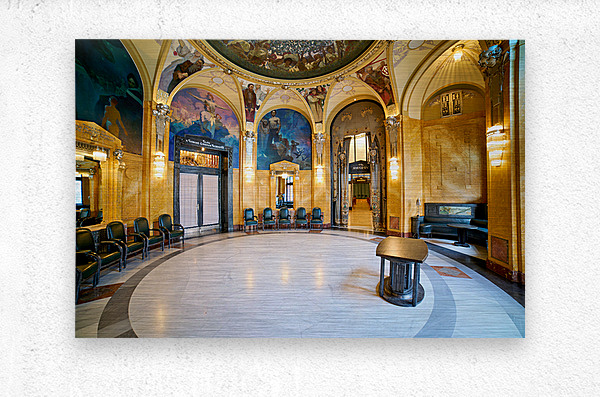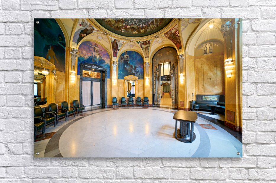 ABOUT THIS ARTWORK: ORNATE HISTORIC HALL WITH MURALS ARCHES AND ELEGANT SEATING.