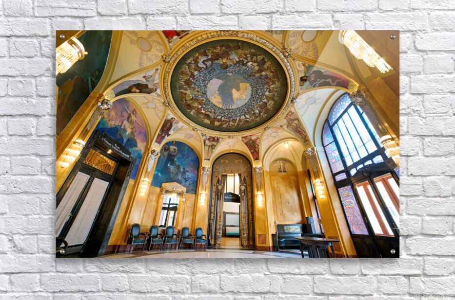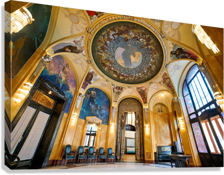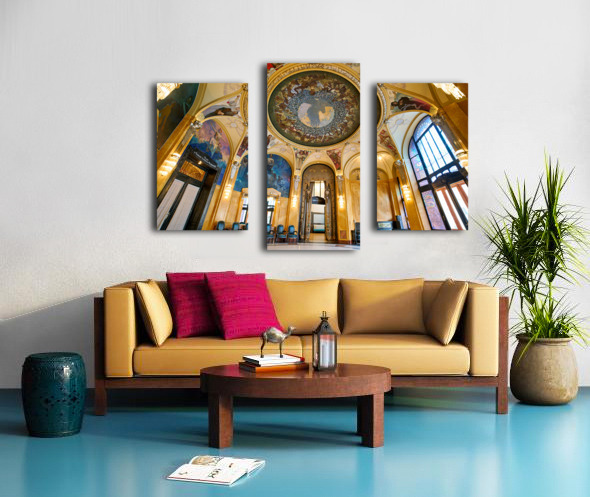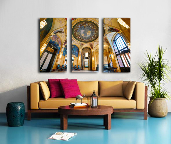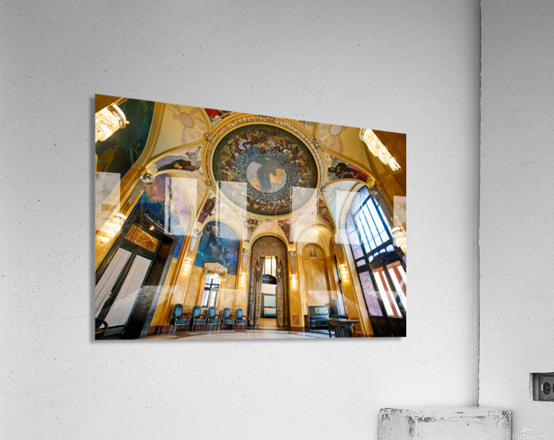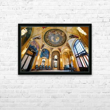 Grand hall with elaborate murals dome and stained glass. Frame print