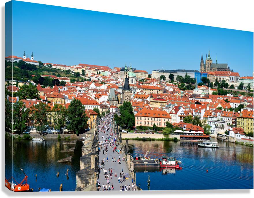 Get this artwork "Pragues iconic Charles Bridge Vltava River and historic city " in a framed print.
