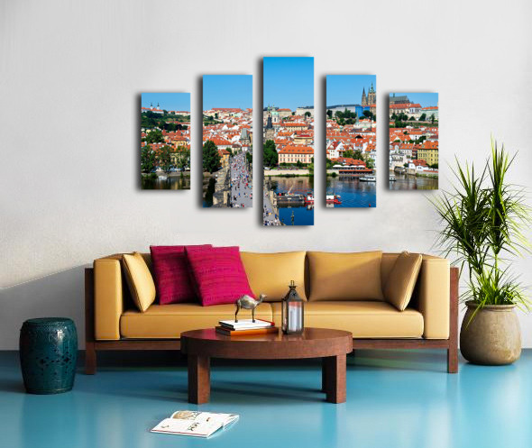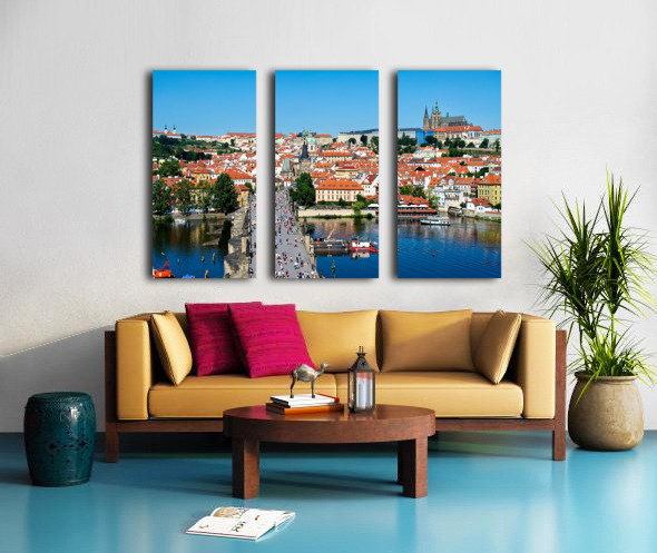 Pragues iconic Charles Bridge Vltava River and historic city  Frame print