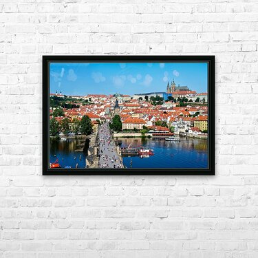 Pragues iconic Charles Bridge Vltava River and historic city  Picture Frame Printing