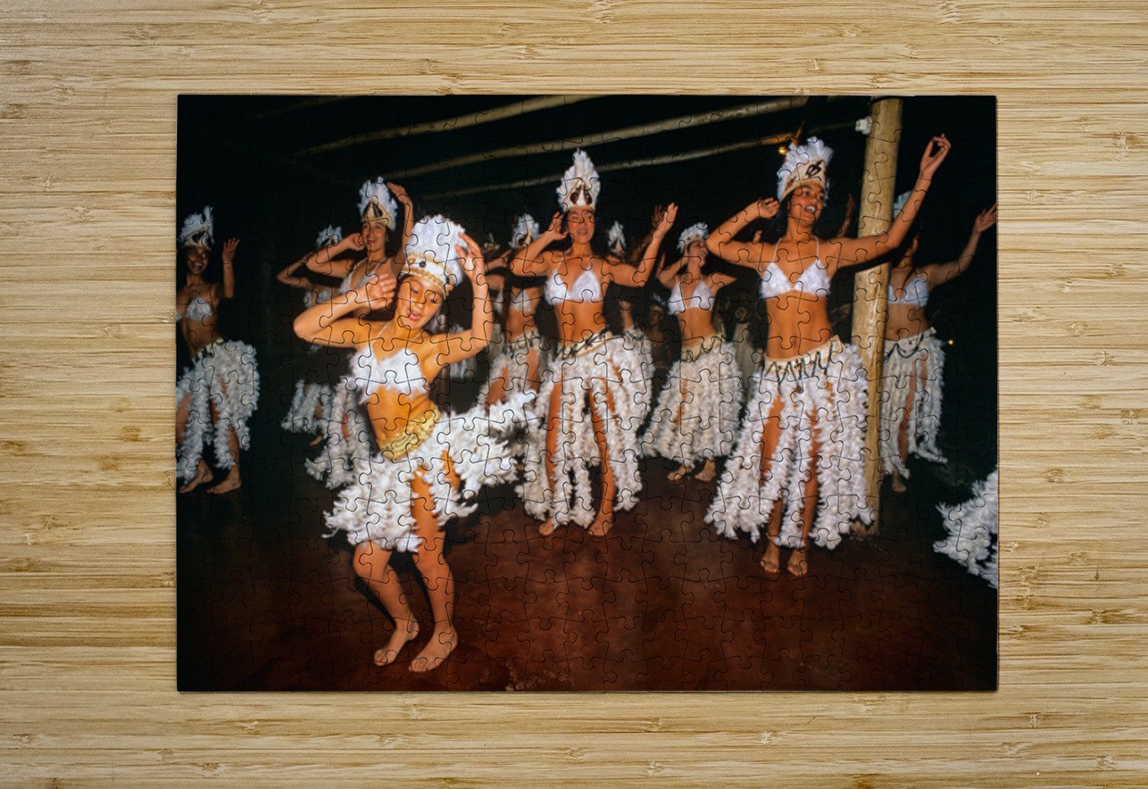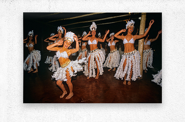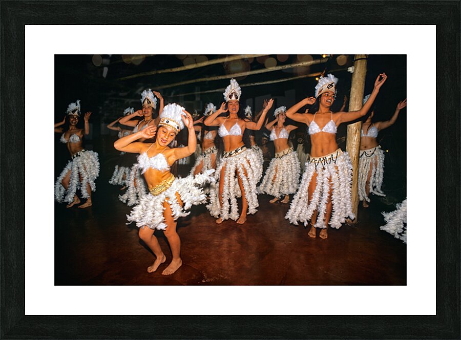 Women in feathered costumes dance together to celebrate culture and heritage on Easter Island. Their movements reflect tradition and community spirit.