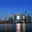 Bright city lights shine on the Shanghai skyline at night. Buildings reflect on the water creating a lively scene full of activity.
