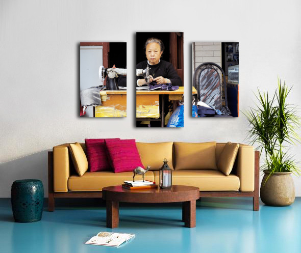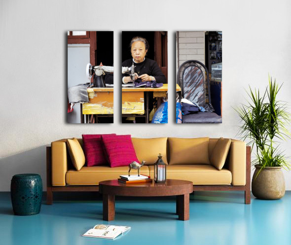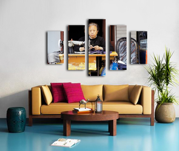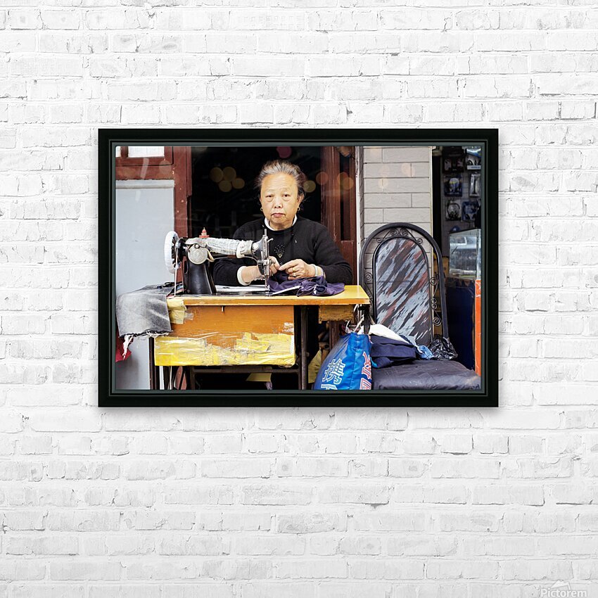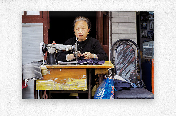 Get this artwork "Elderly woman sews at machine in Shanghai China" in a framed print.