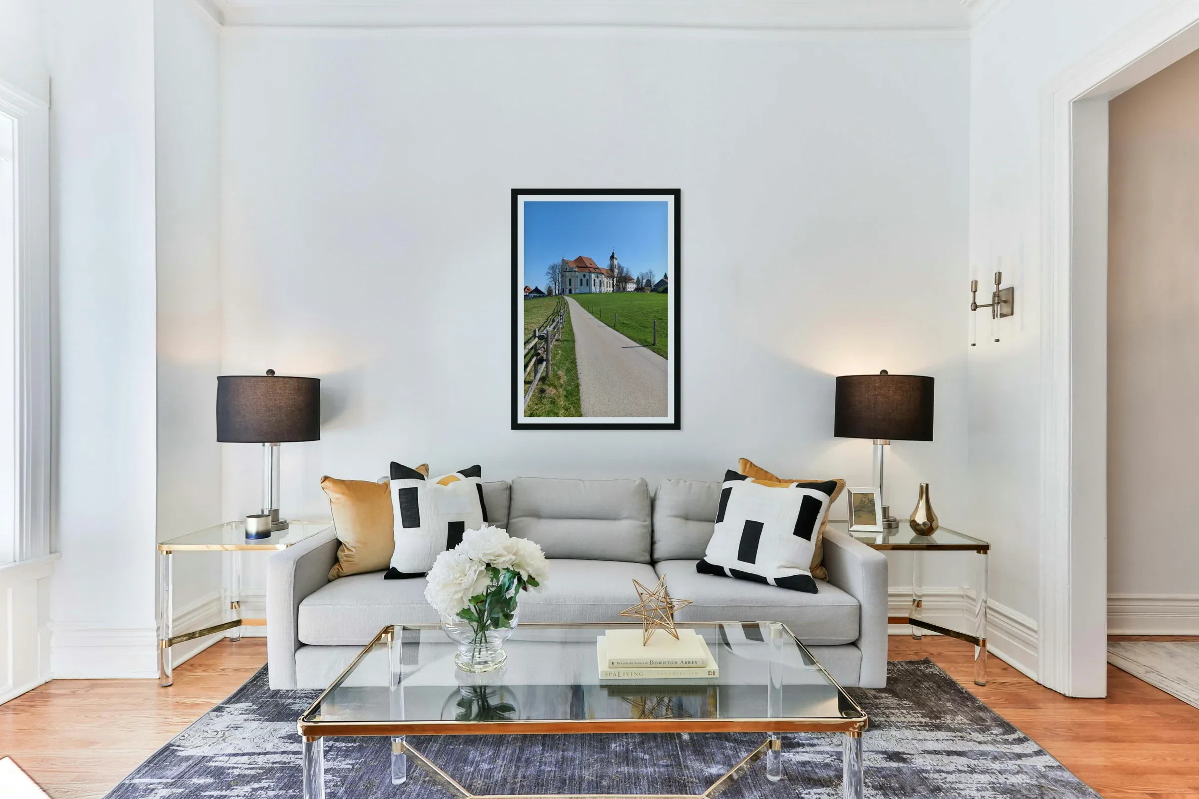 Visit wieskirche on the romantic road in bavaria germany Frame print