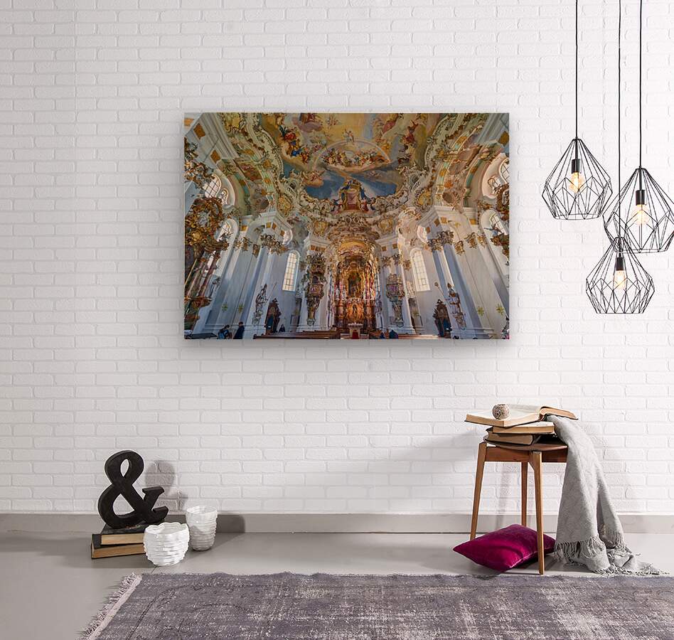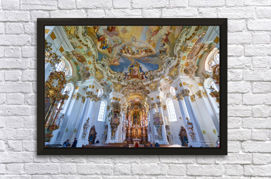 People explore the interior of Wieskirche a famous church in Bavaria. The detailed artwork and design attract visitors year-round.