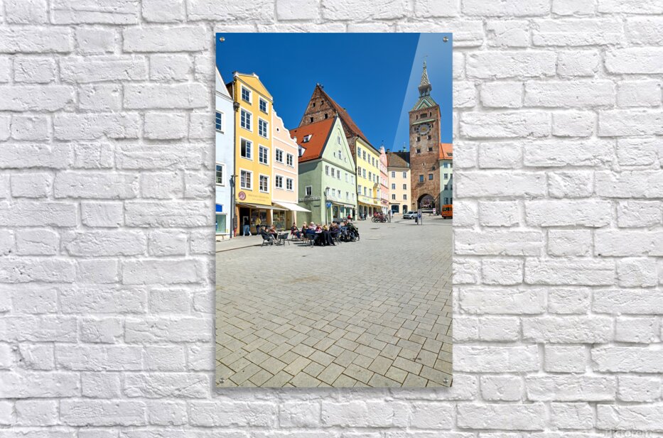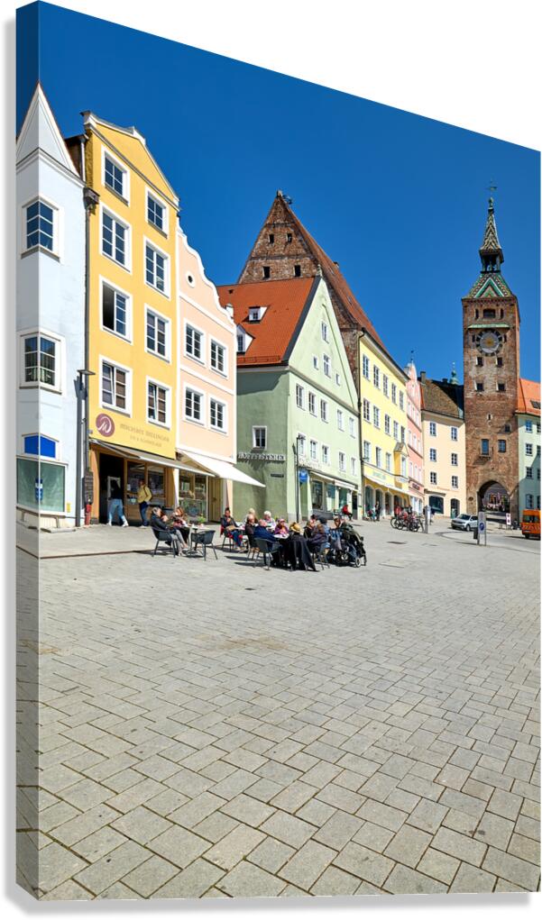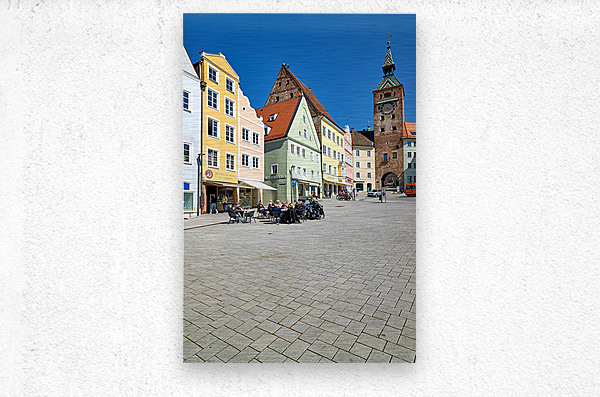 Get this artwork "People enjoy meals in Hauptplatz square in Landsberg am Lech Ger" in a framed print.