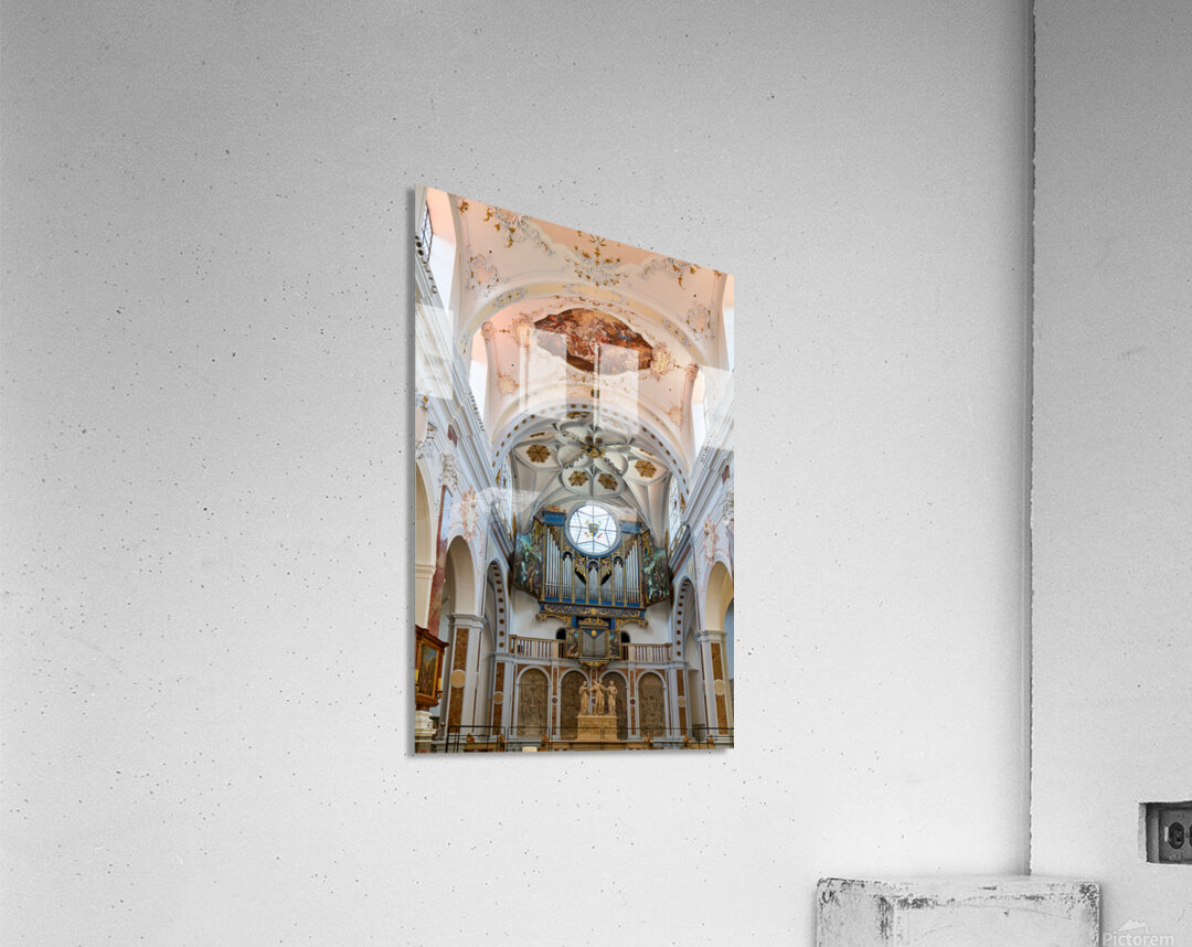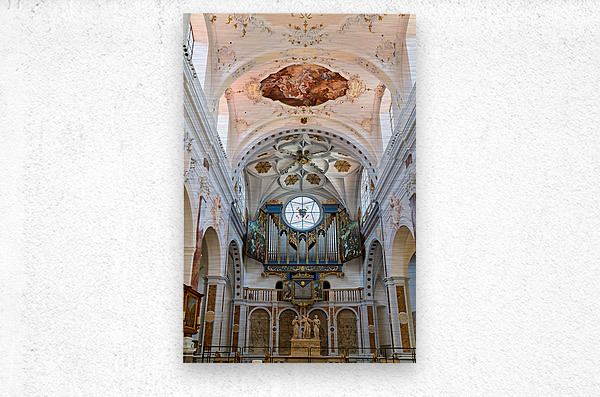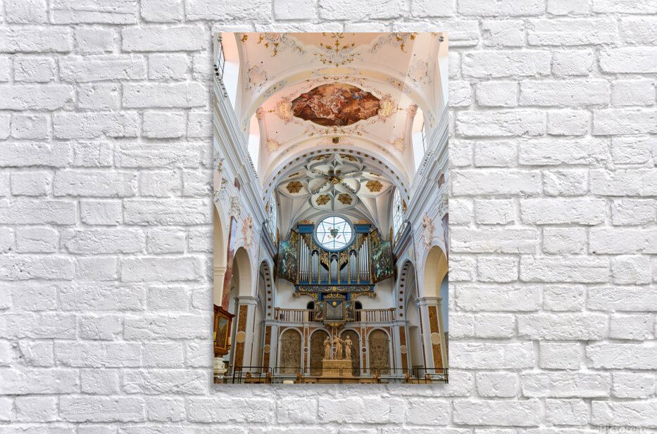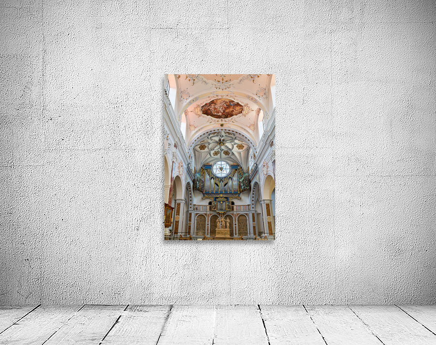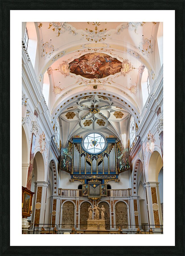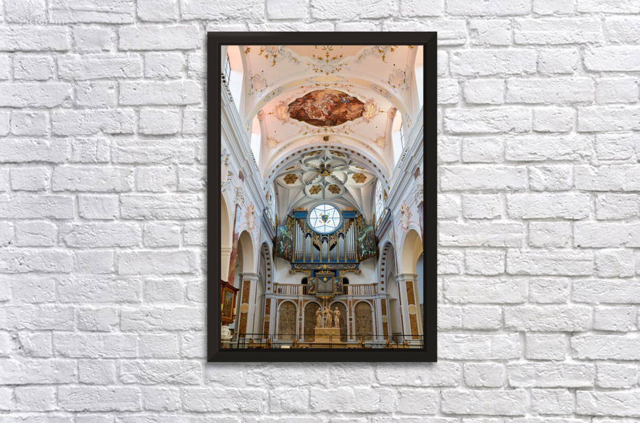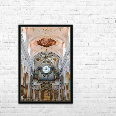 "Inside st. annes church in augsburg on the romantic road" in a framed print.