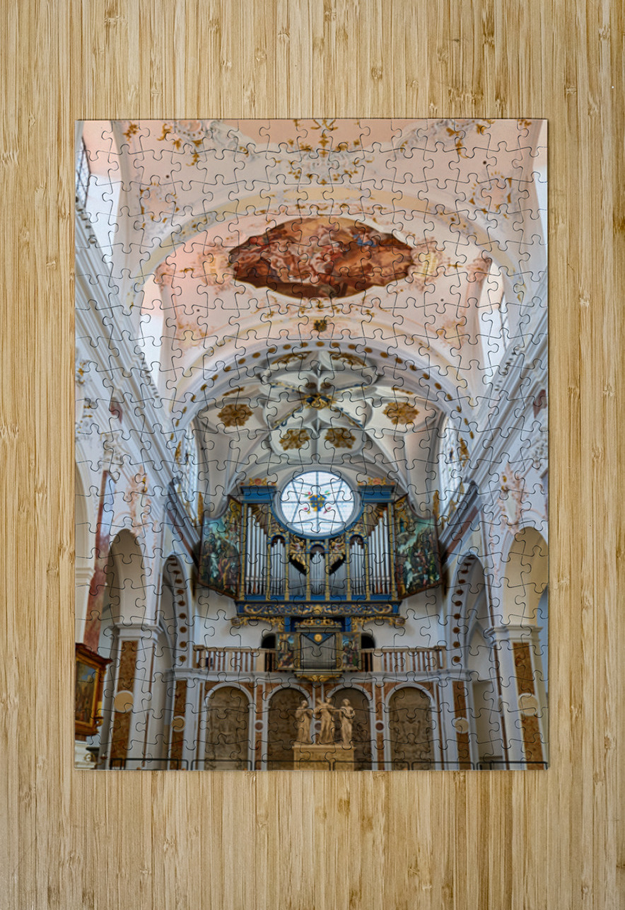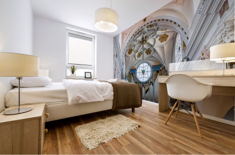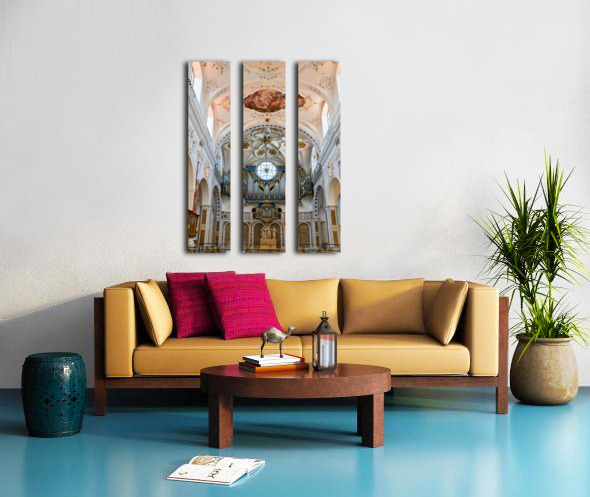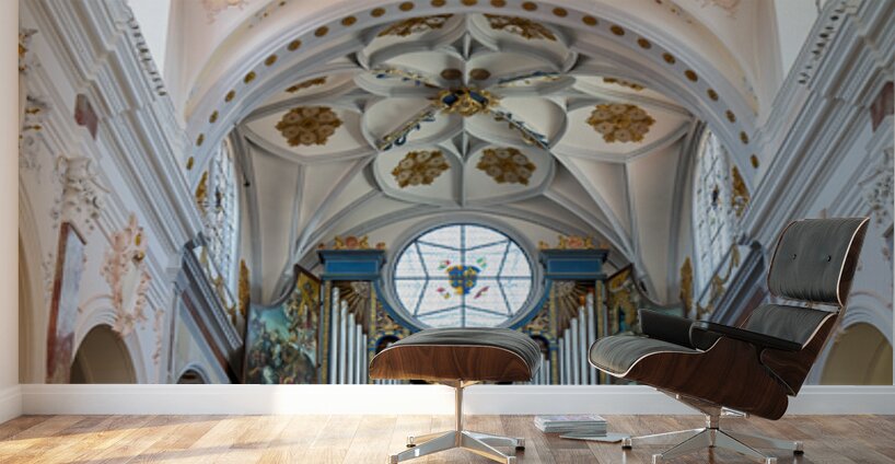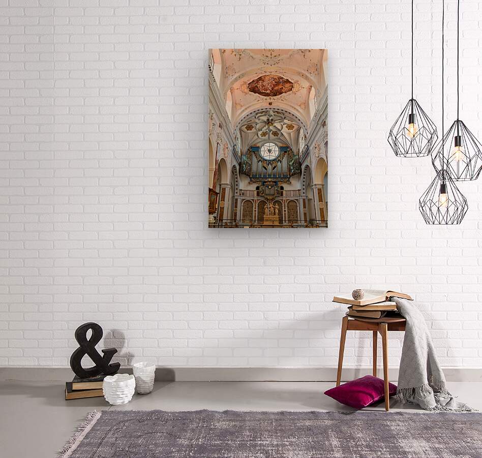 "Inside st. annes church in augsburg on the romantic road" in a framed print.