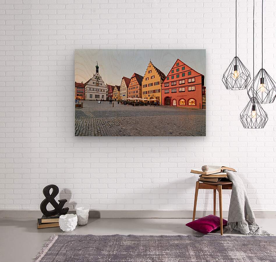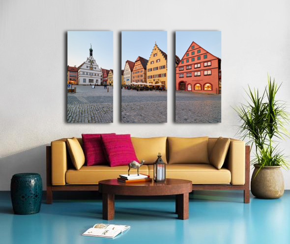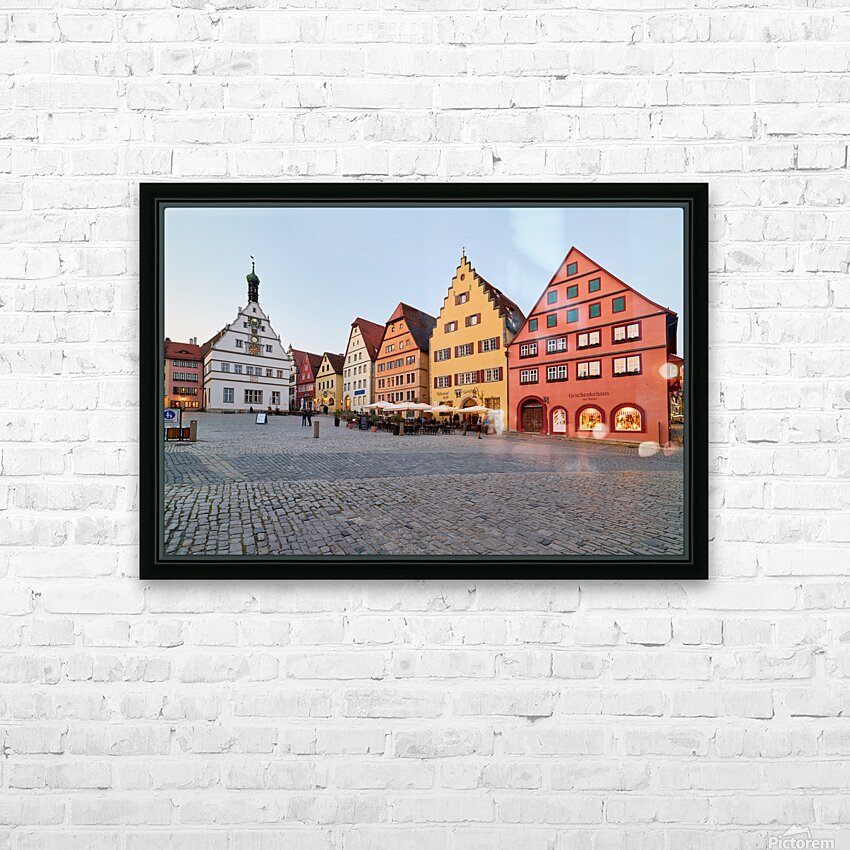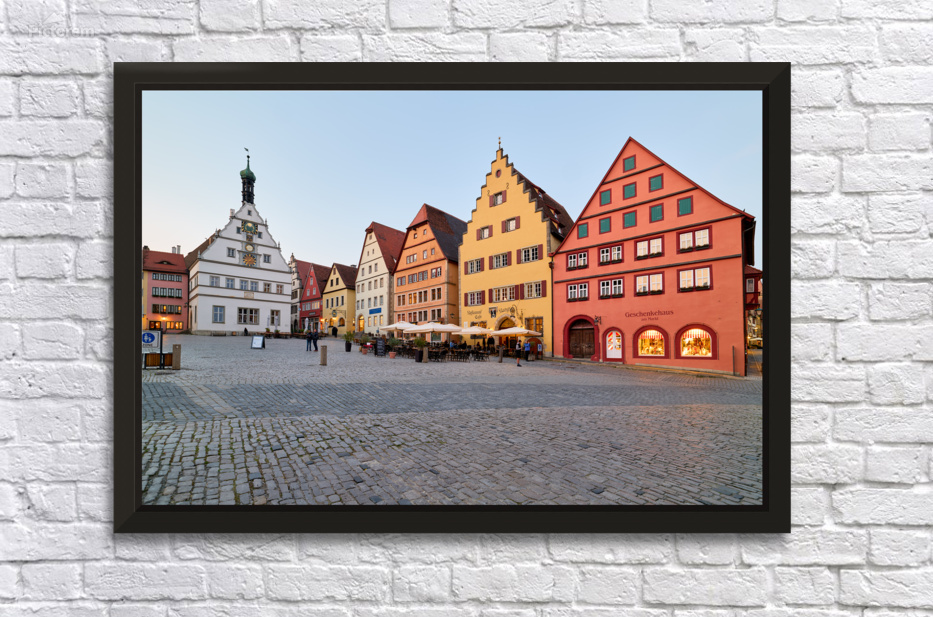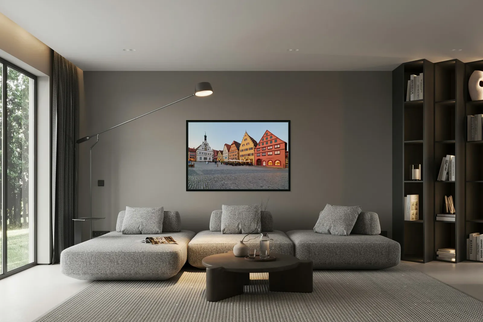 Rothenburg ob der Tauber features a market square with historic buildings and outdoor seating. Visitors explore and enjoy the vibrant atmosphere.