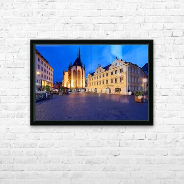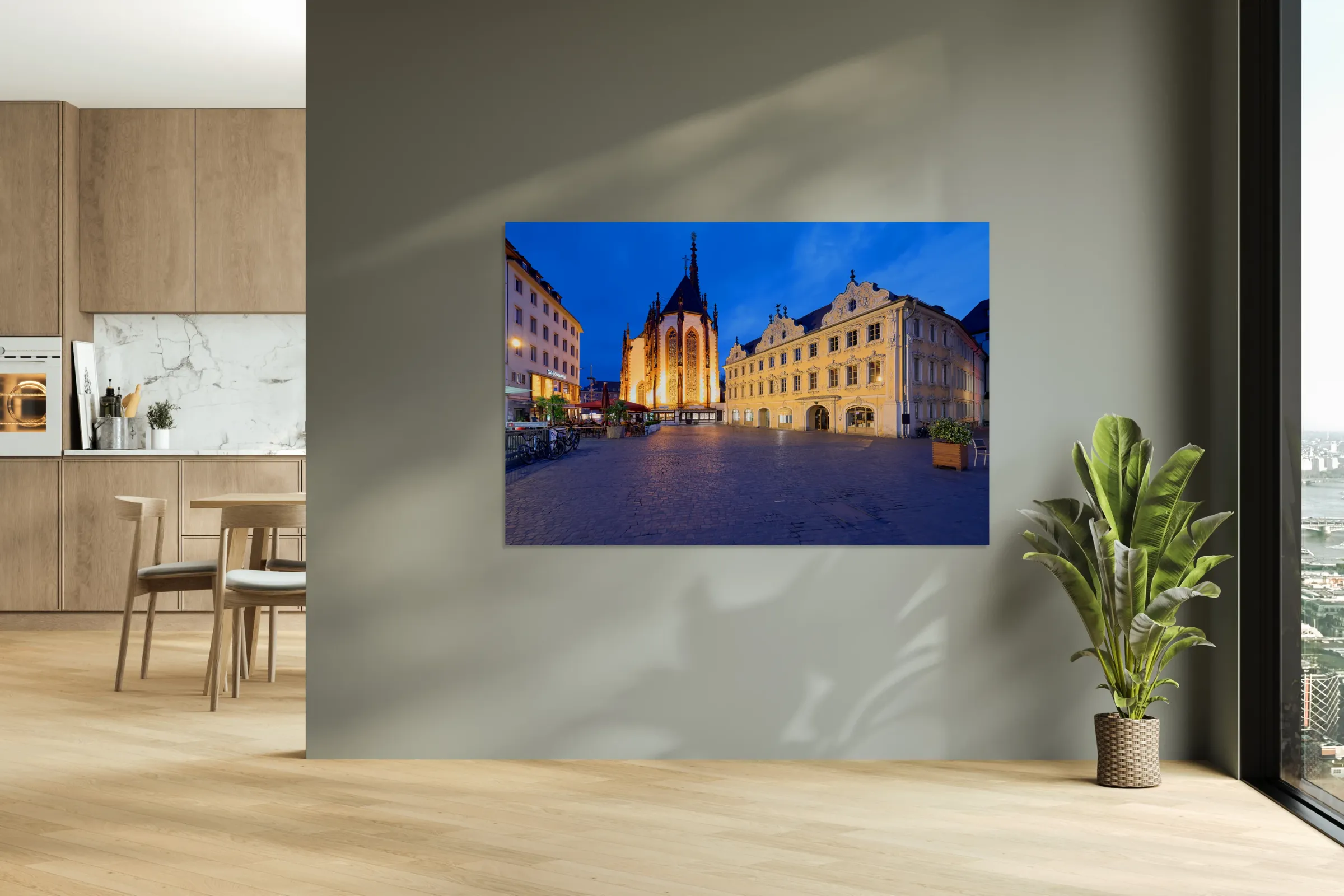 Get this artwork "Wurzburg at dusk with Marienkapelle and Falcon House in view" in a framed print.