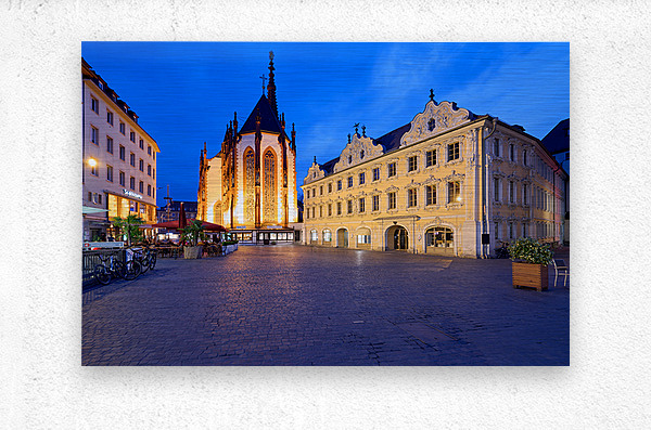 Wurzburg at dusk with Marienkapelle and Falcon House in view Picture Frame Printing