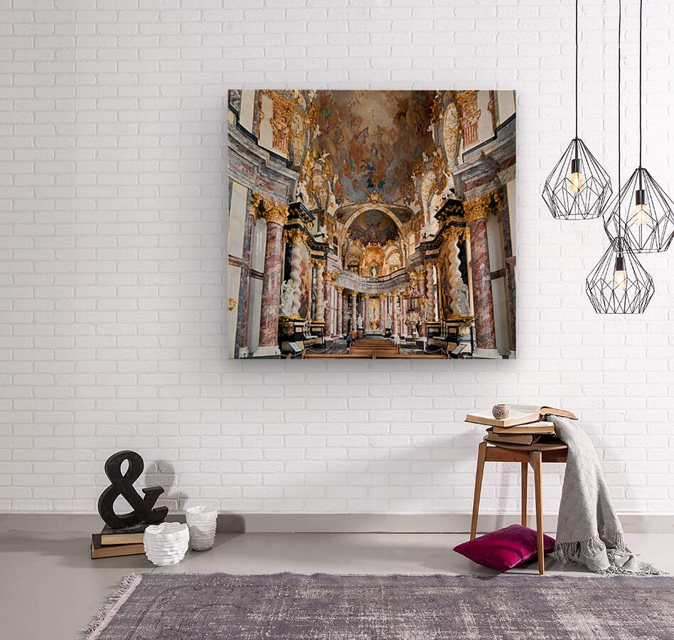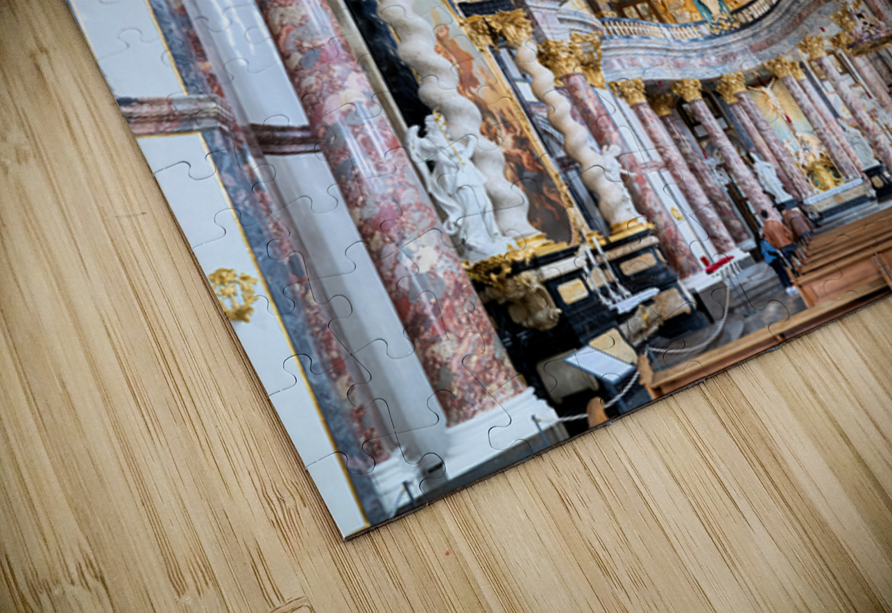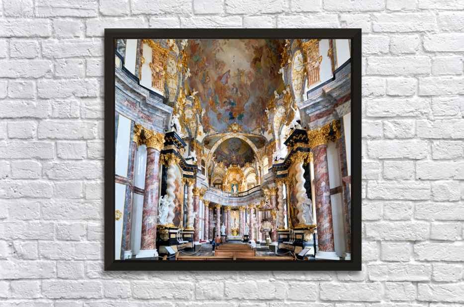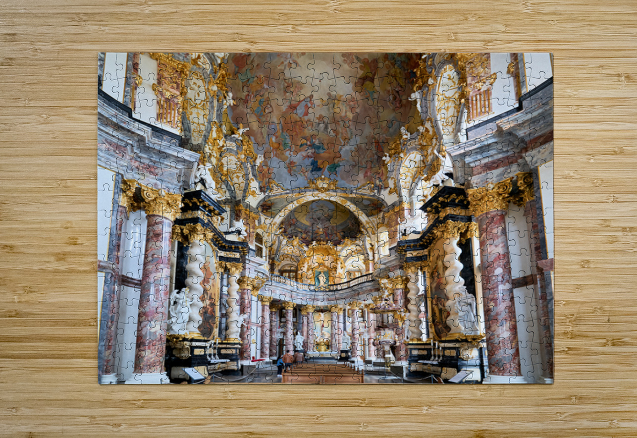 Visitors explore the Hofkirche Court Church of Residenza in Wurzburg adorned with ornate decorations and historic artwork.